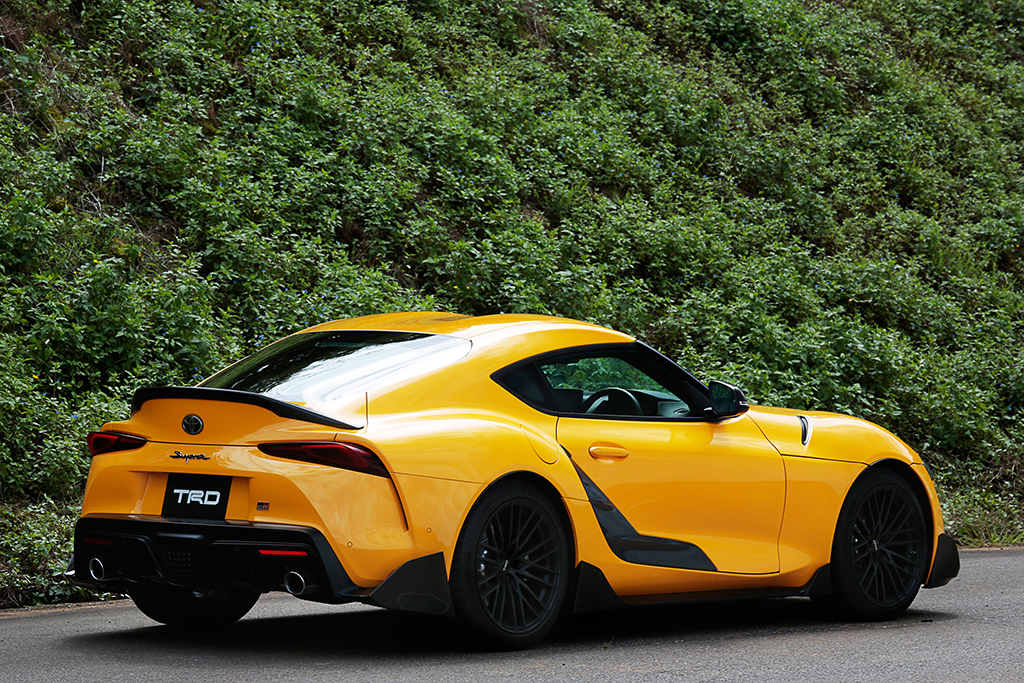 TRDの手になる2台のスープラは、GRパーツ(TRD)を装着することで、さらにアグレッシブな姿となっていました。
