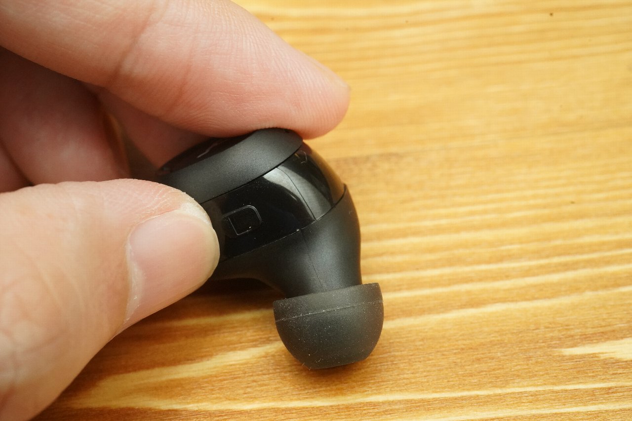 ボタン操作性については全く変更がなく、電源を入れるだけで自動でBluetoothのペアリングモードに入ります。イヤホン左右とも1回押しで再生/停止、また左右1秒長押しで曲戻し/曲送りに対応。2回押しは左右どちらも音声アシスタントの呼び出しです。相変わらず、イヤホンで音量操作はできず。残念。
