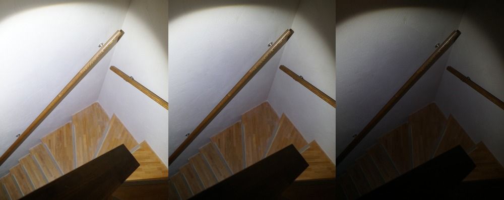 上の写真はIMR18650使用時のもの。Hiが500ルーメン、Midが200ルーメン、Lowが50ルーメンとなります。室内であれば50ルーメンでも十分に活動できそうなくらい。