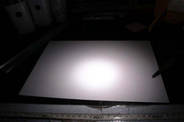 前述の通り、この配光が大好きです。それなりに中心照度を持ちつつ、左右広い範囲まで光が回り込みます。SUREFIRE「MAXVISION」と似たコンセプトですが、より広い周辺視野が得られます。「MAXVISION」のようなタクティカル性を求めない場合、個人的には小型ライトの配光で一番好みに合います。