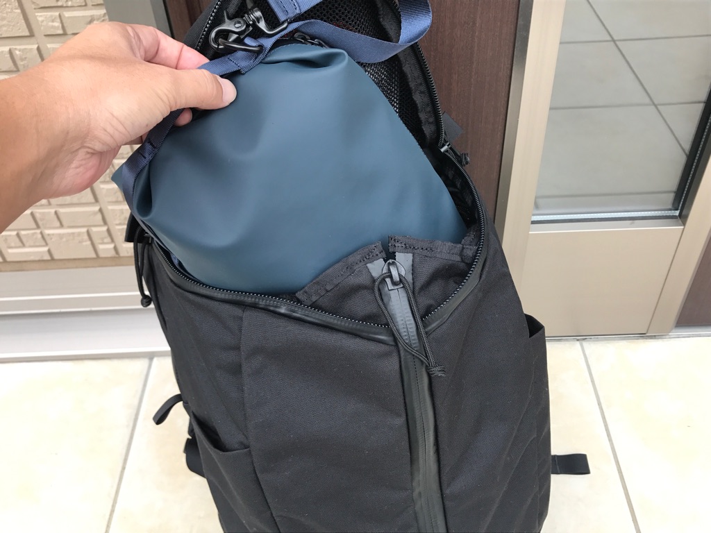 反対側のDカンに付けると、もういっぱしのバッグです。ハンドルが邪魔にならないので、バッグ・イン・バッグとして使うならこちらがおすすめ。
