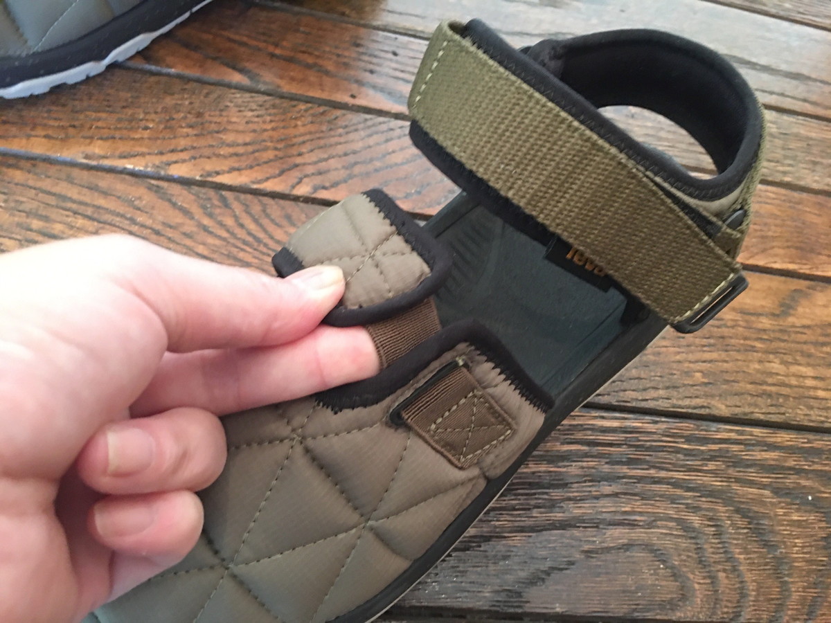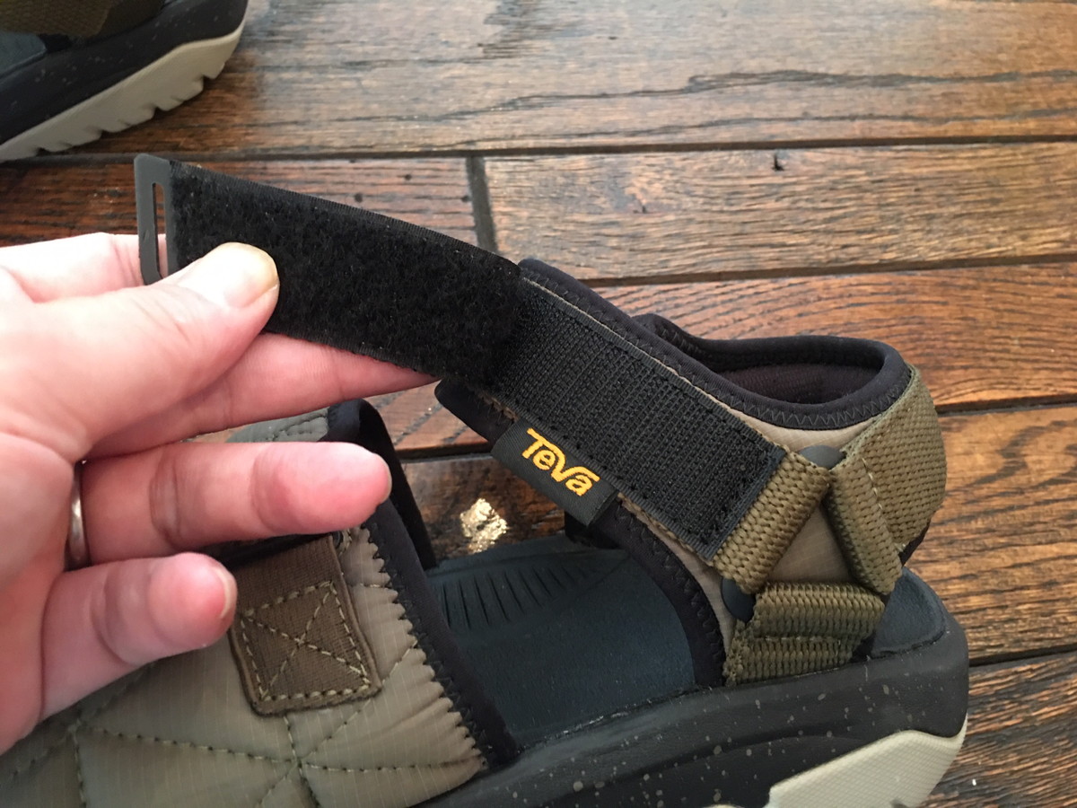 サンダルの後ろ半分は「ハリケーン」と同様に面ファスナーのストラップとウェビングストラップで構成されていて、足をしっかりとホールドします。