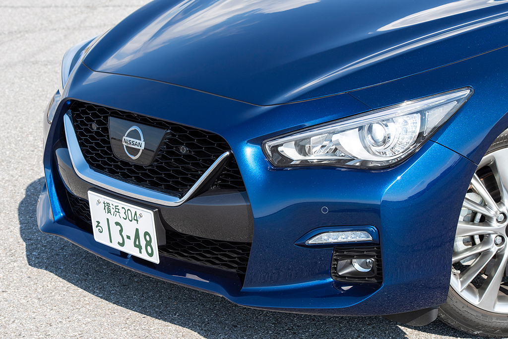 日本仕様には初搭載となるV型6気筒ツインターボエンジン“VR30DDTT”ユニットは、海外向けのスカイラインにはすでに搭載されていたもので、日産自動車のV型エンジンとしては最新スペックとなります。そのスペックは、排気量2997ccの60度V型6気筒で、水冷式インタークーラーとふたつのターボチャージャーを備え、最高出力は304馬力、最大トルクは40.8kgf-mを発生します。組み合わされるトランスミッションは、マニュアルモード付きの7速AT。駆動方式はFR(後輪駆動)のみの設定となります。