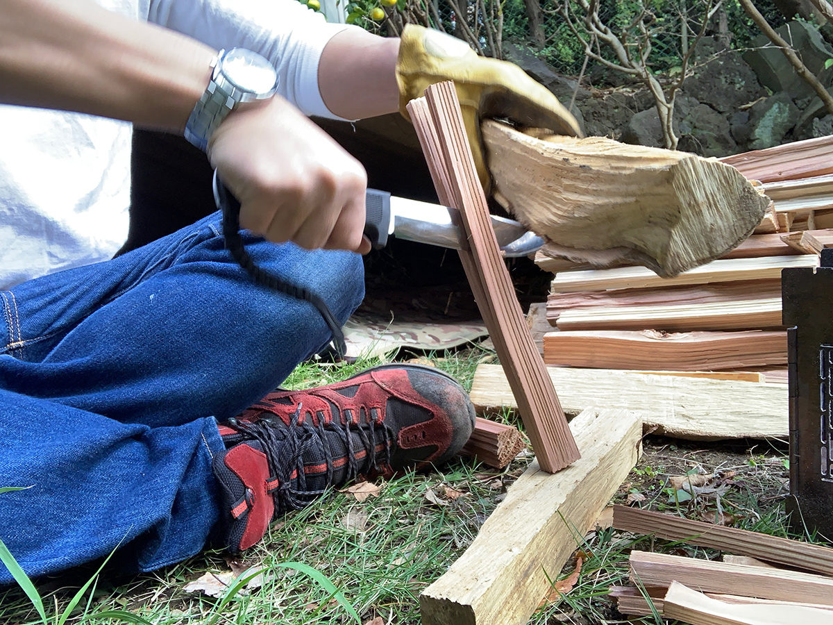 2.燃えやすく作りやすい太さに薪を割る