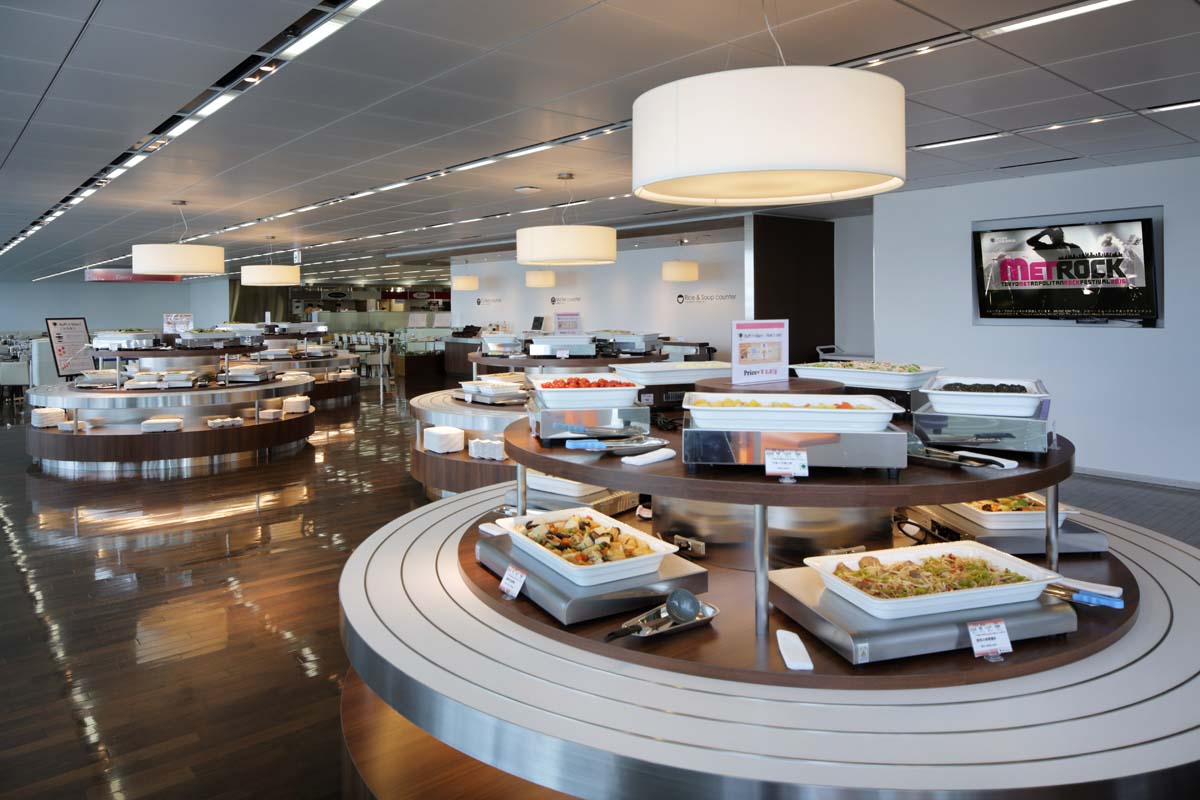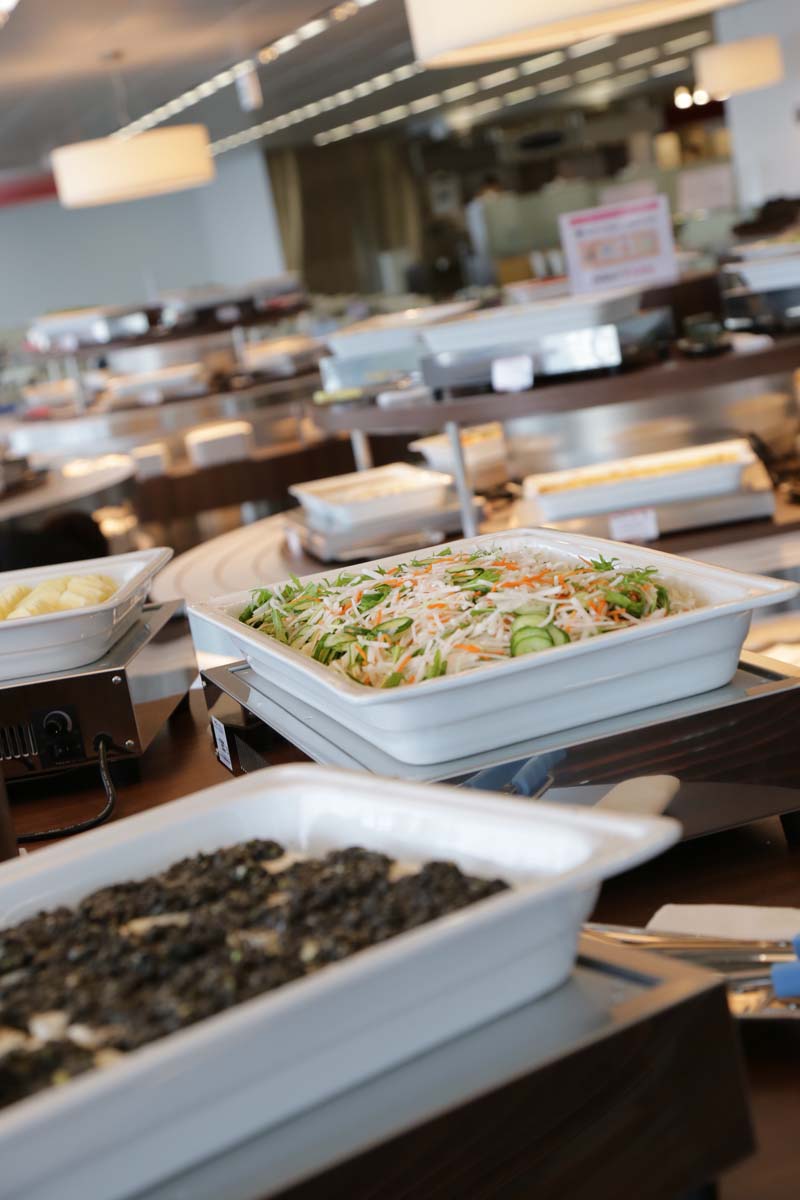 先ほどの「リラックスゾーン」は約4000平米の広大な社員食堂の一画に最近オープンした新コーナー。そのコーナーに隣接しているのが、4台のビュッフェ台を備える「ビュッフェアイランド」です。