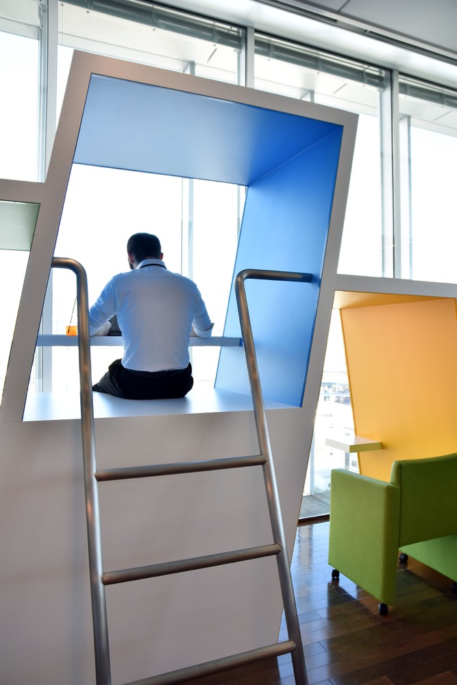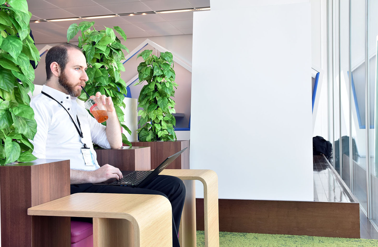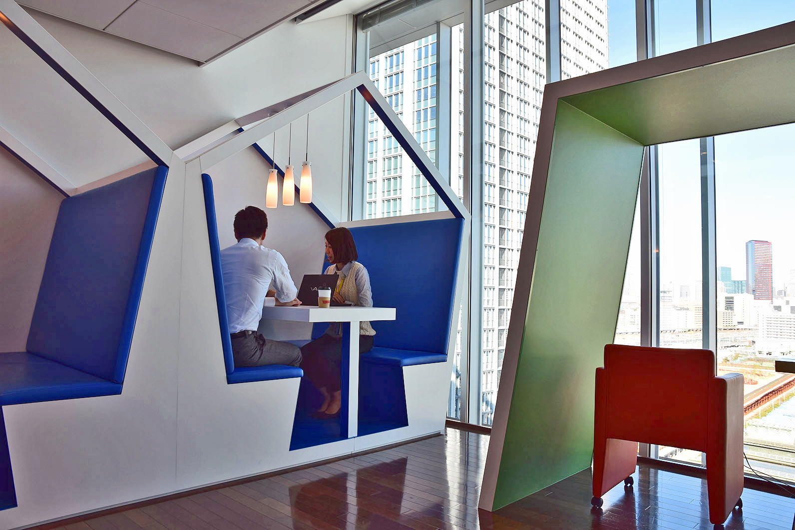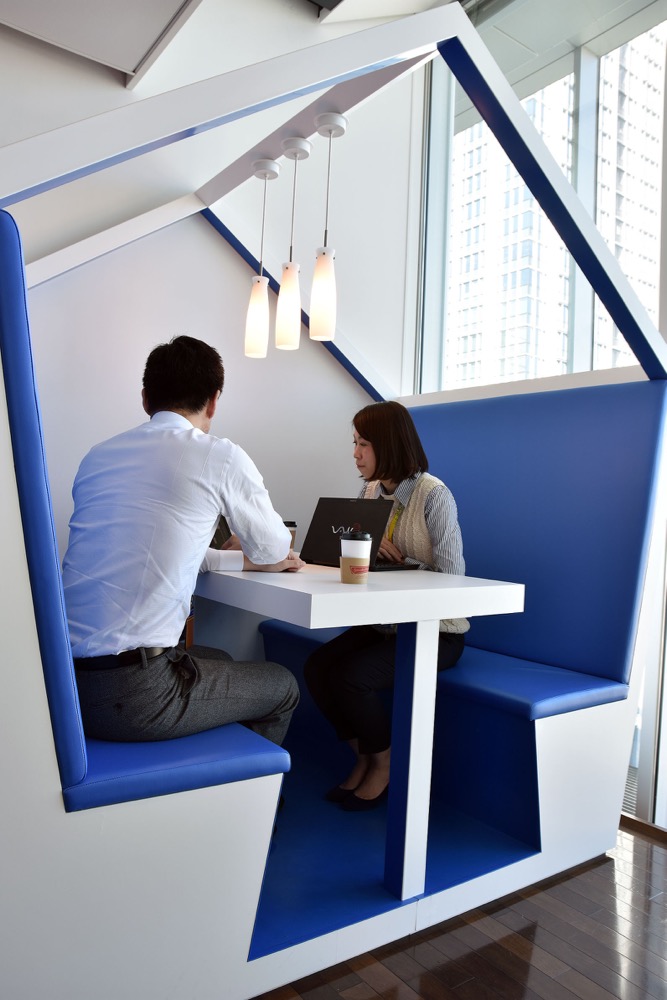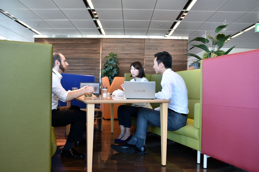他の席からの視線が、柔らかに遮られるシートでは、打ち合わせをする社員も多いそうです。