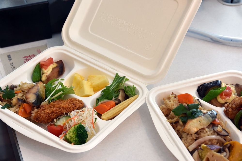 専用のパックに、自分仕様のお弁当を盛り付けて。