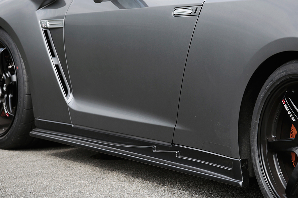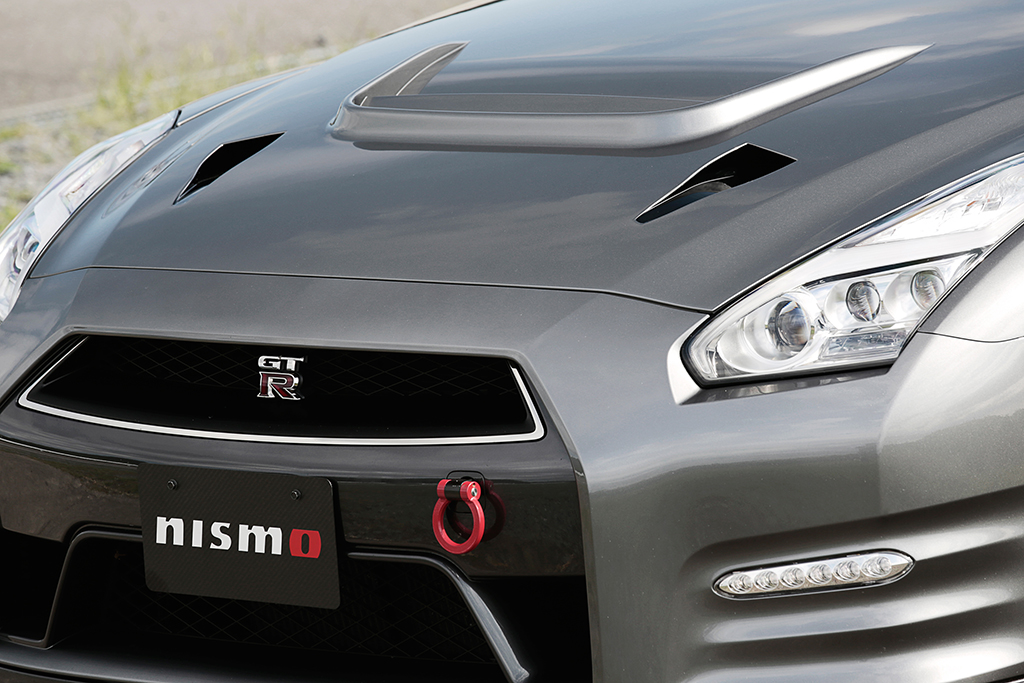 当日、試乗用に用意されたのは、2013年モデルのGT-Rをベースに仕立てられたCRSコンセプト。FRP製フロントフェンダーキットやドライカーボン製のエンジンフードなど、全身にNISMOパーツを装着。