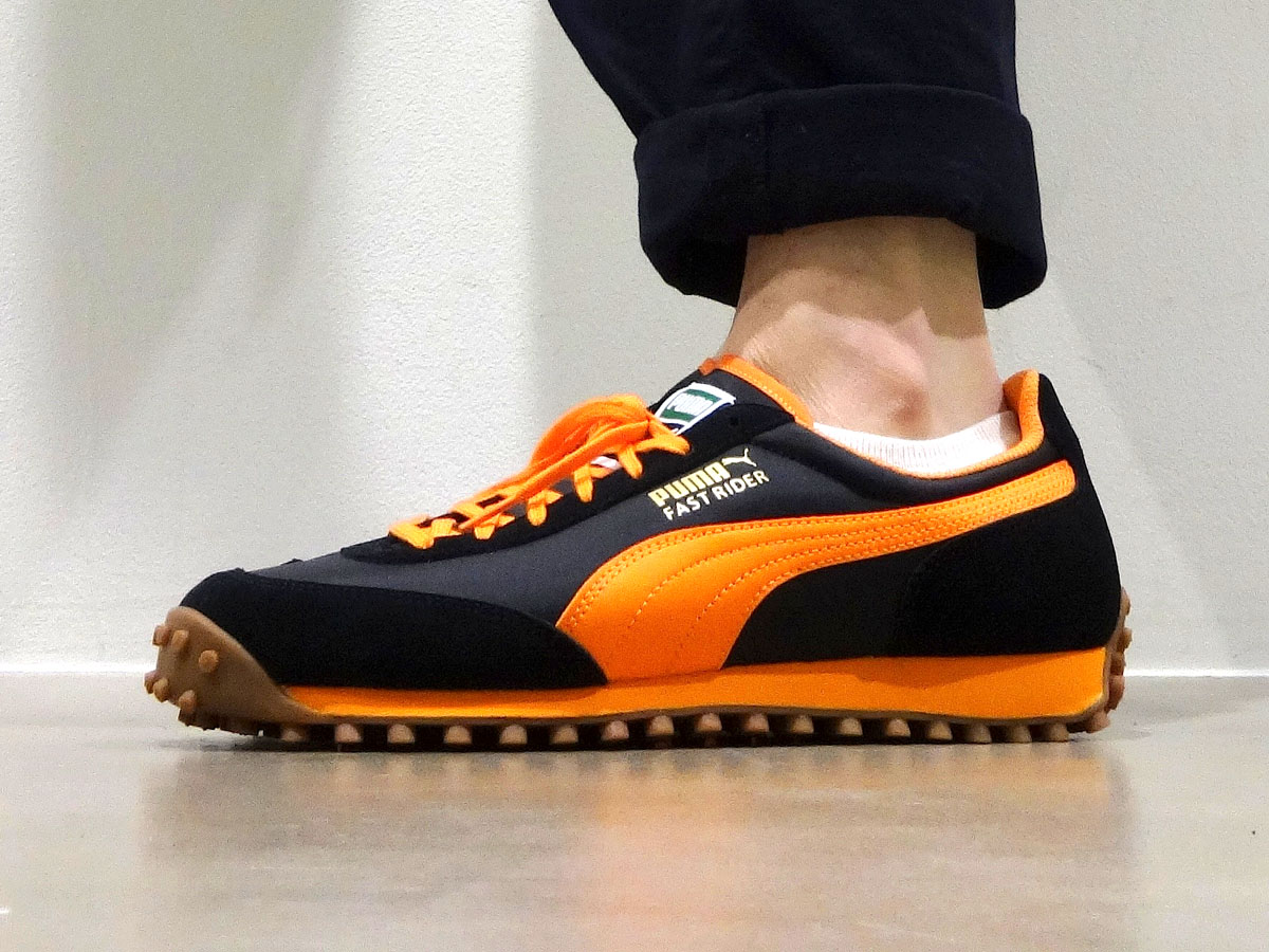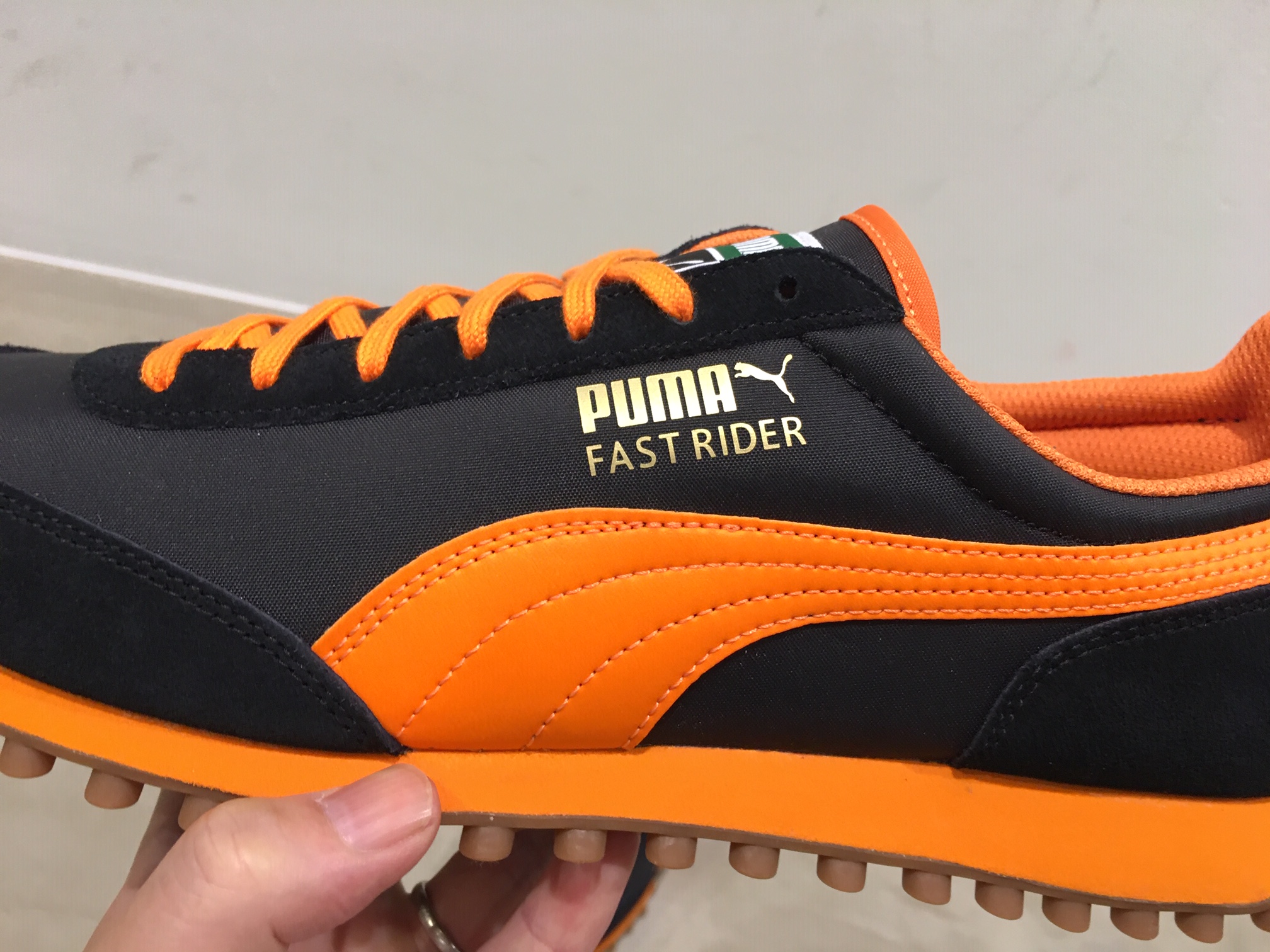 サイドにはお馴染みのプーマロゴとモデル名のFAST RIDERをゴールドでプリント。どことなくゴージャスな雰囲気も感じさせます。