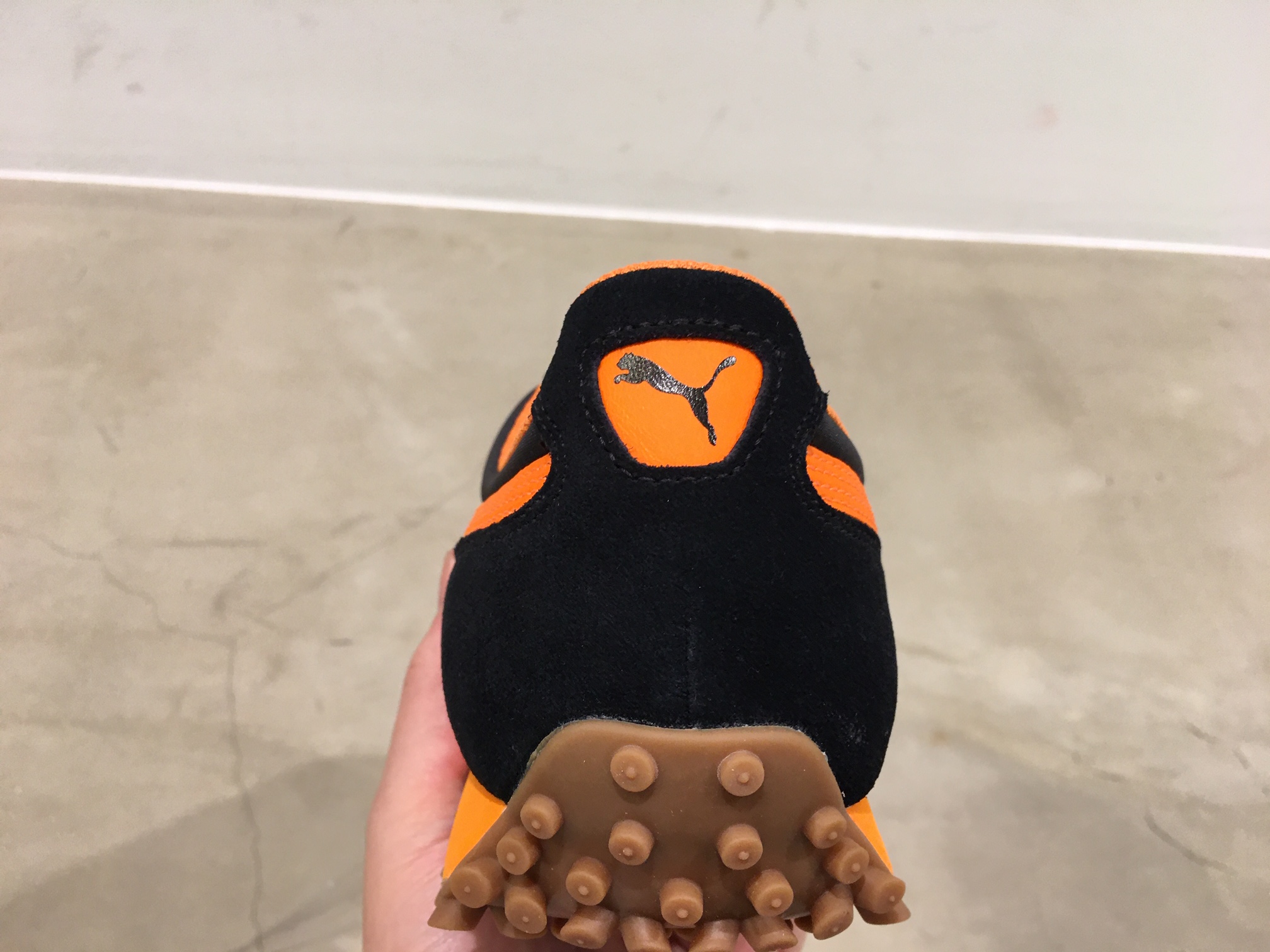 ヒールのマドにもプーマのアイコン入り。そして、レトロランニングモデルを象徴する、めくれ上がったアウトソールもポイントですね!