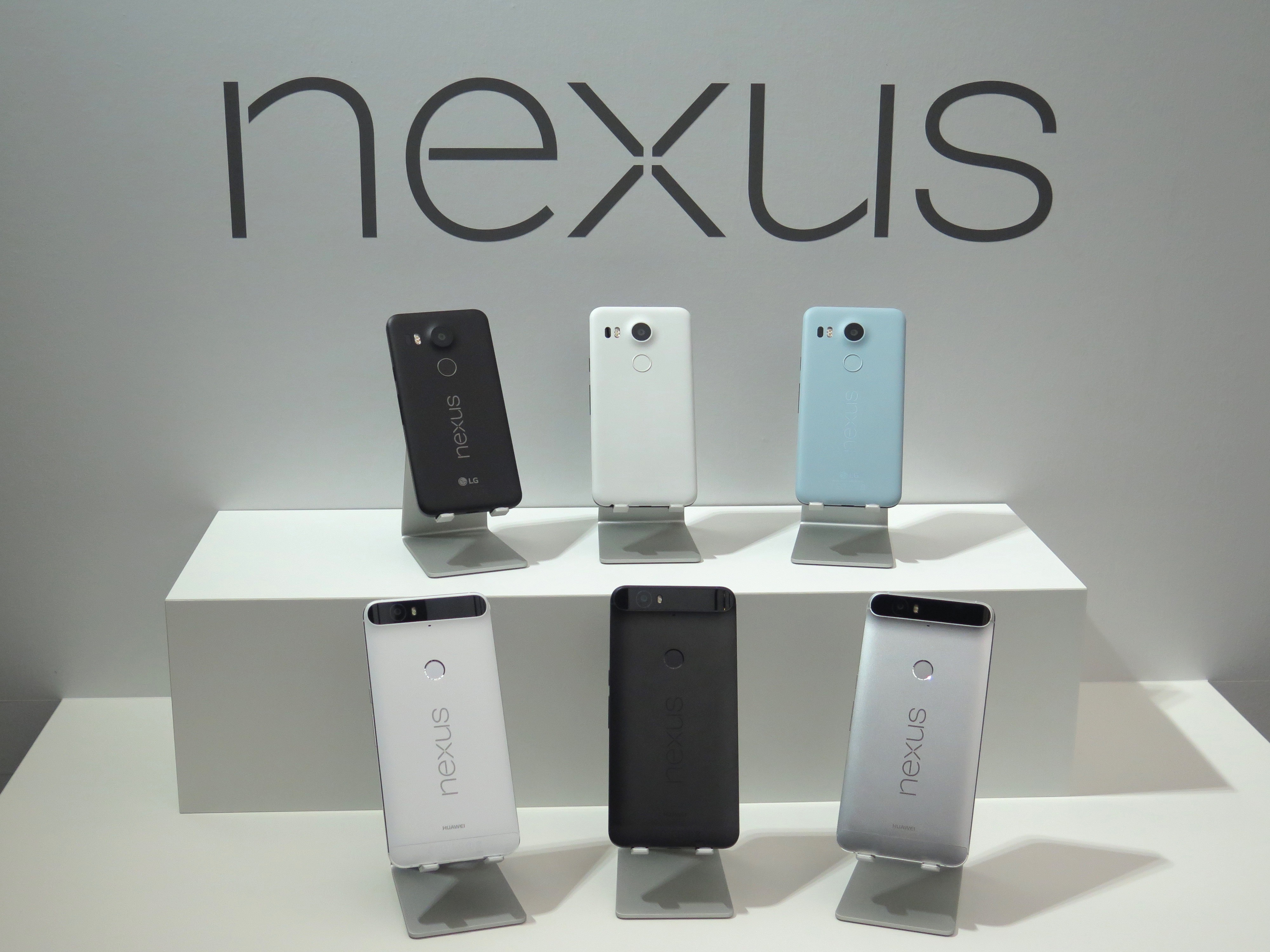 Nexus 5Xは、5.2インチのディスプレイを搭載したベーシックモデル(上段)。Nexus 6Pは、5.7インチの大画面やデュアルスピーカーを搭載したハイエンドモデル(下段)
