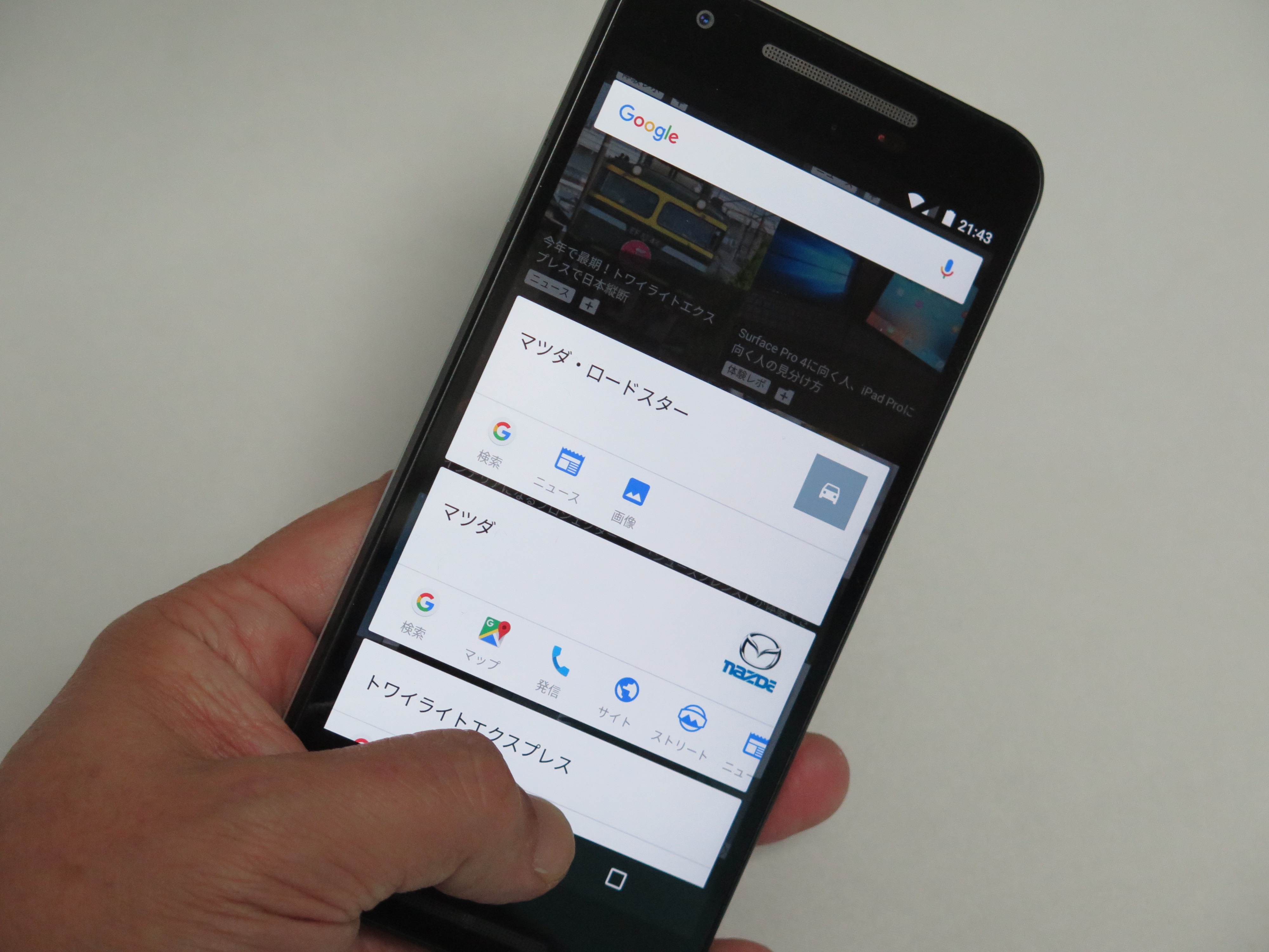 そのカードにある「検索」や「マップ」「画像」「YouTube」などのアイコンをタップすると、ワンタッチで知りたい情報にアクセスできるという仕組みです。