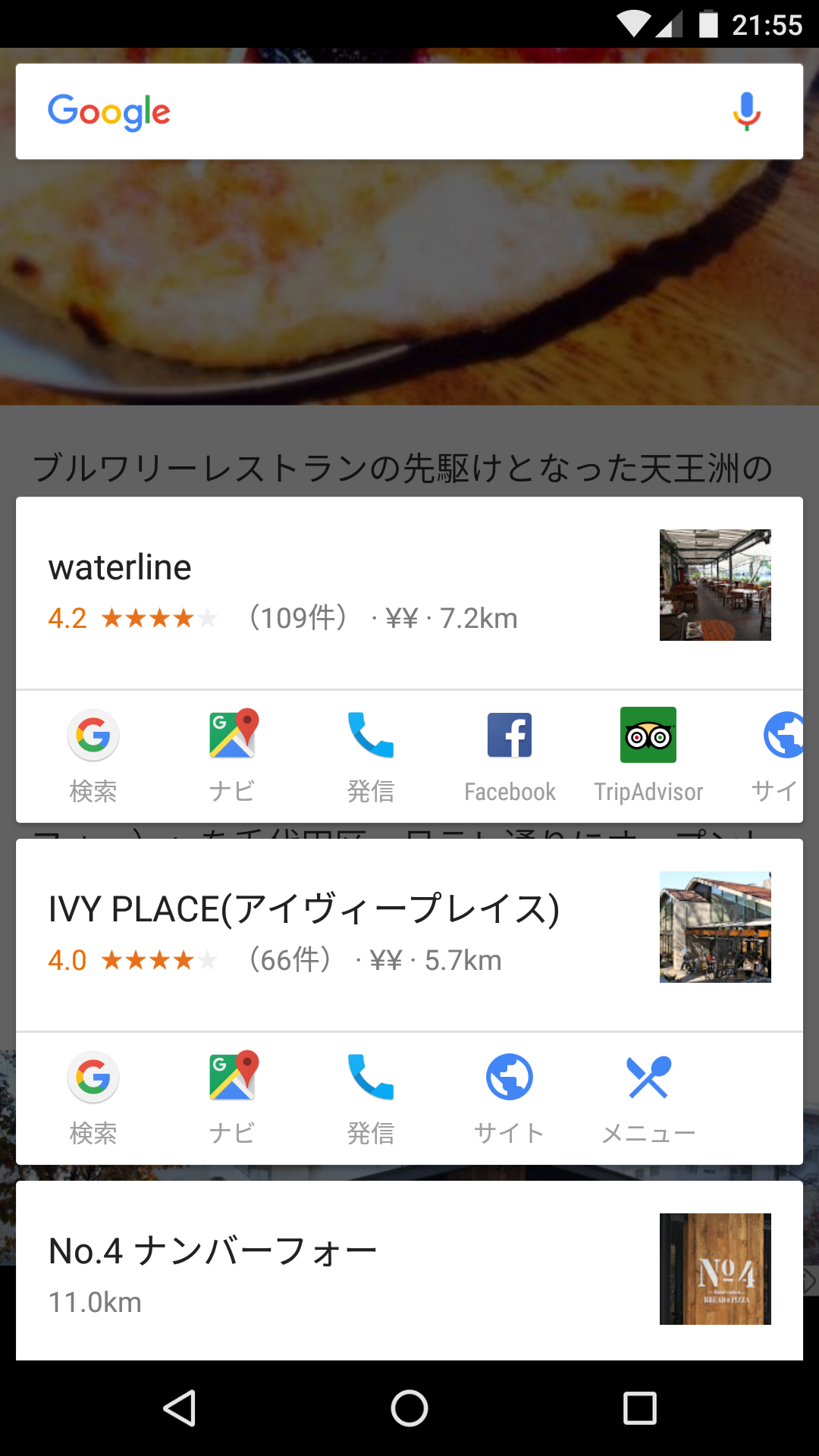 記事中の気になるお店の名前がヒット