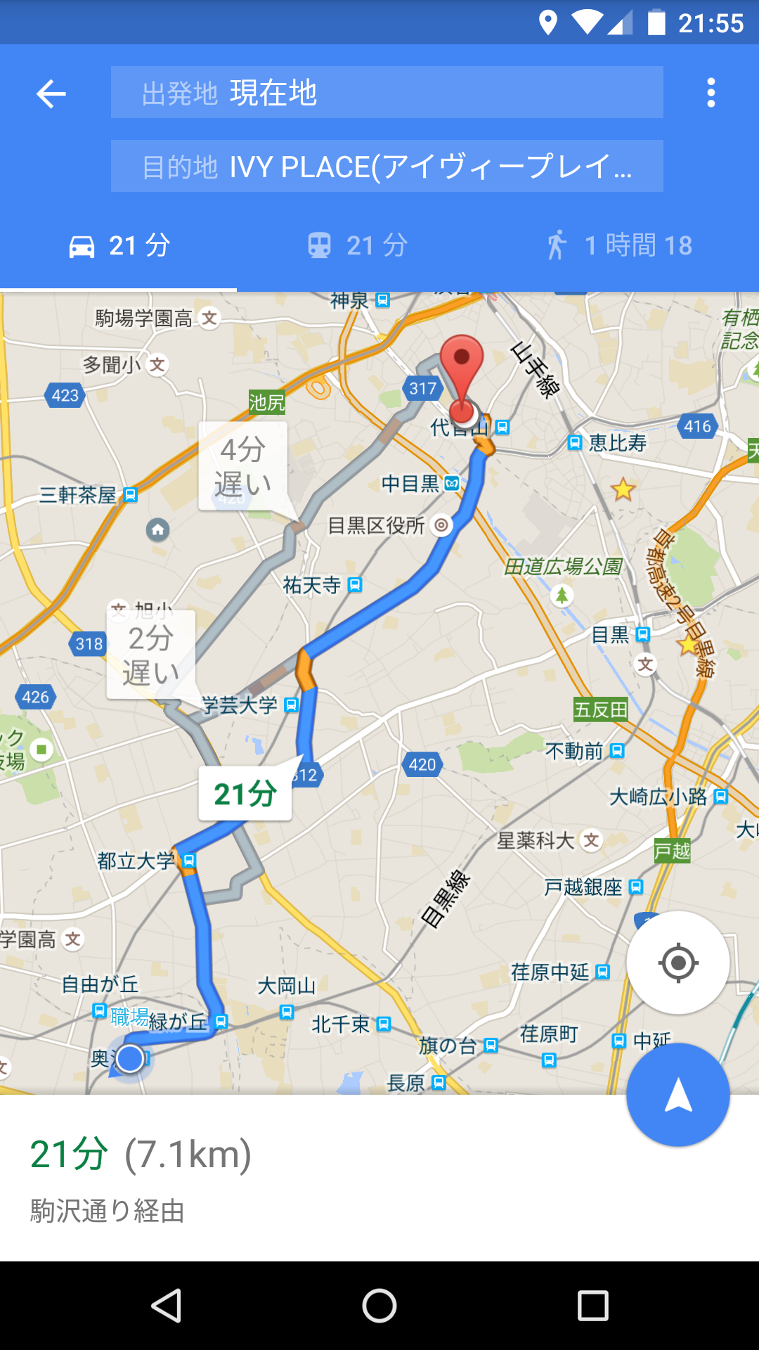 現在地からのルートも、すぐに調べられる