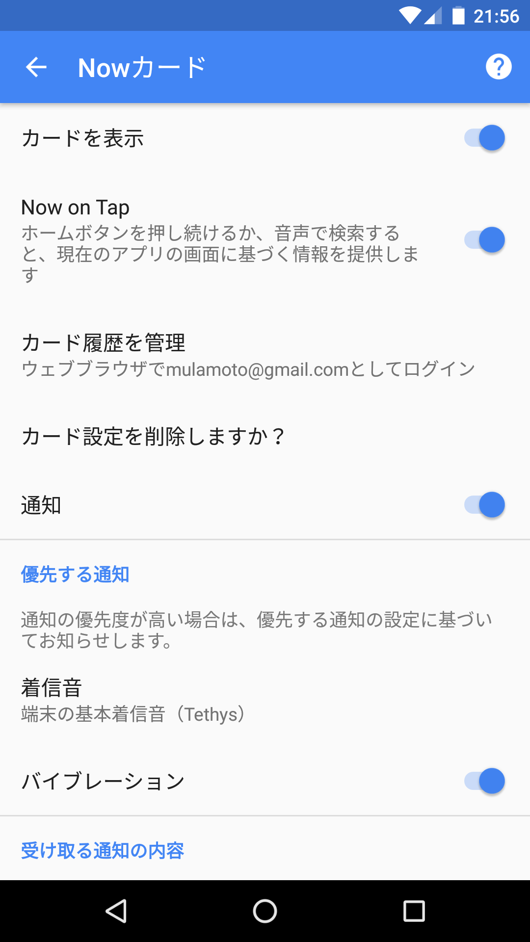 Now on Tapのオン・オフは、Google Nowのメニューから行える