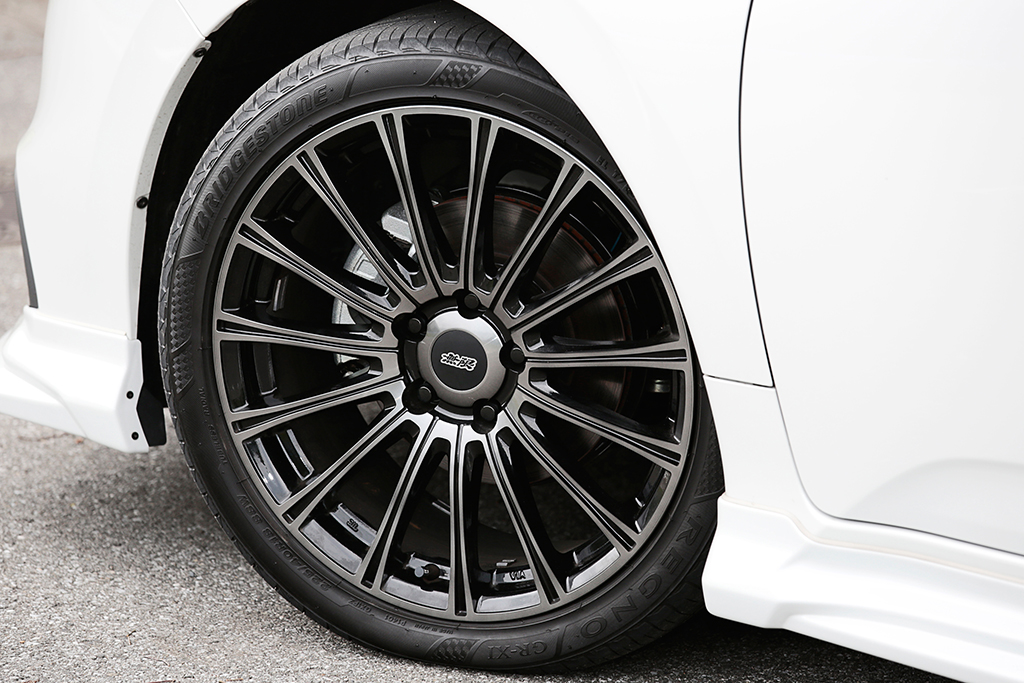 足下は、18インチのアルミホイール「MDA」を装着し、ググッとスポーティなイメージに。ドライカーボンを使った「ミラーカバー」も、ワンポイントでスタイルを引き締めます。