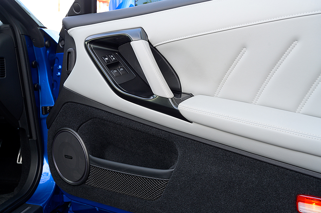 ドアパネルに埋め込まれたスティック状のオープナーを引き、キャビンへ収まると、ダッシュボード回りの意匠こそ2017年モデルから継承していますが、新たに設定されたライトグレーのレザーインテリアが新鮮な印象です。