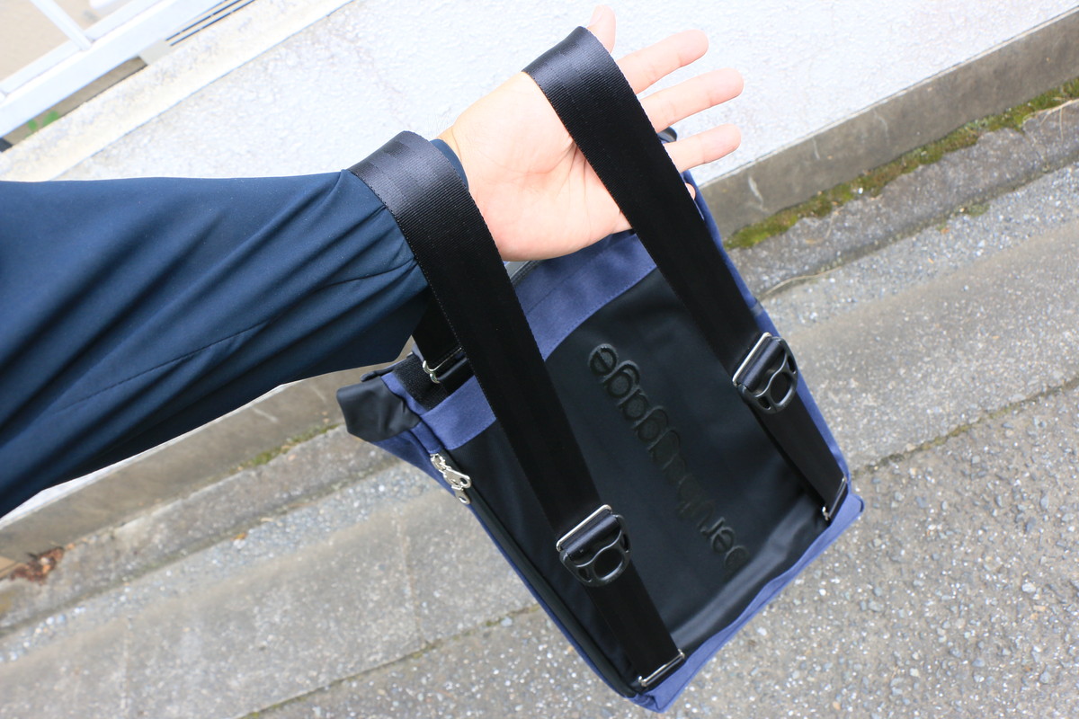 実際に使ってみると、このストラップが自分の通勤スタイルには非常に便利。自転車を飛ばして駅まで行って、急いで電車に乗り込む際にも持ち替えるだけ。時間のロスが全くありません。それでいて、バックパックとしての背負い心地も良好で、重い資料やノートPCなどを入れているときなどは、歩いているときでもバックパックとして使っています。