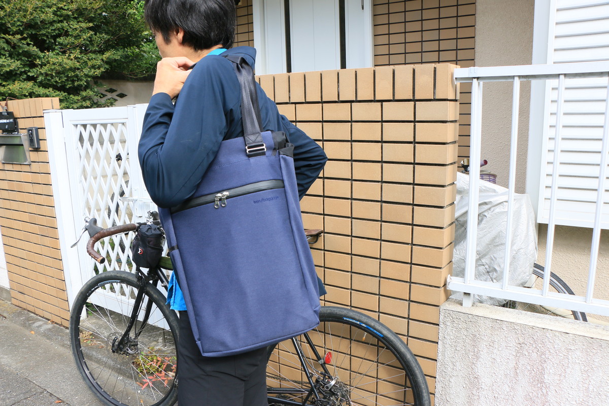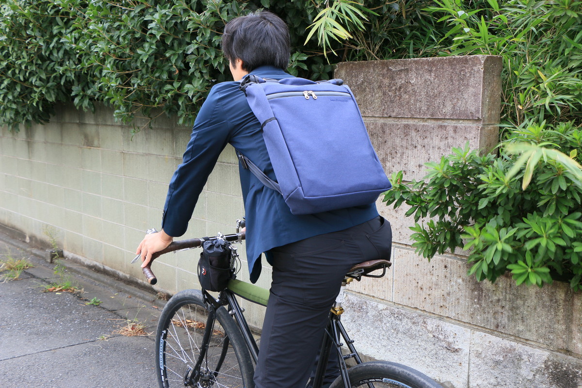 普段、仕事で出かける際は、自転車で駅まで行ってそこから電車に乗る場合がほとんど。乗っている自転車はロードバイクやMTBなので、駅まではバックパックのように背負えるものがいいんですが、電車に乗ったらトートバッグやブリーフケースのようなスタイルに切り替えられると便利だなと思い、いくつかの2WAYバッグを使ってきました。でも、ほとんどのモデルが、トートバッグとして使う前にショルダーストラップを仕舞わなければならなかったりと、手間がかかるんです。