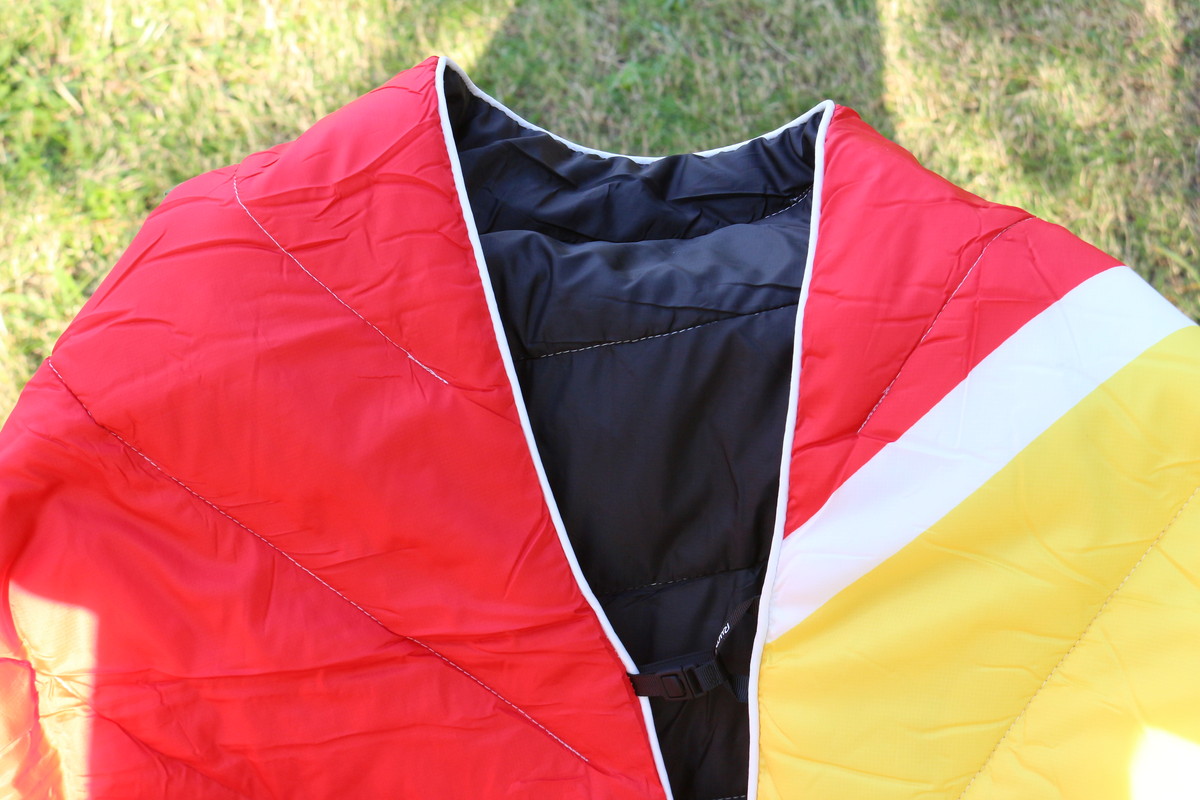 実際にくるまってみて感じたのは、夏用寝袋と似た感じの保温力。寒さの感じ方は人それぞれですが、夏ならこれ1枚でいいし、無積雪の冬キャンプなら5〜10℃程度の寝袋と組み合わせて暖かく過ごせそうです。
