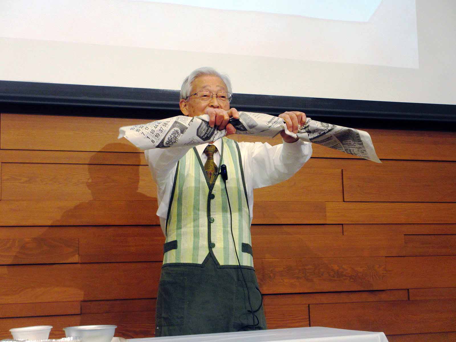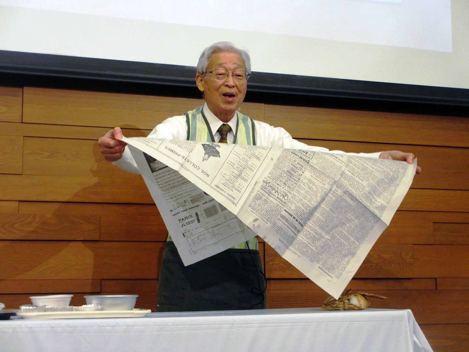 続いて、おにぎり弁当を持ち運ぶときに便利な包み方を奥村さんに教えてもらいました。