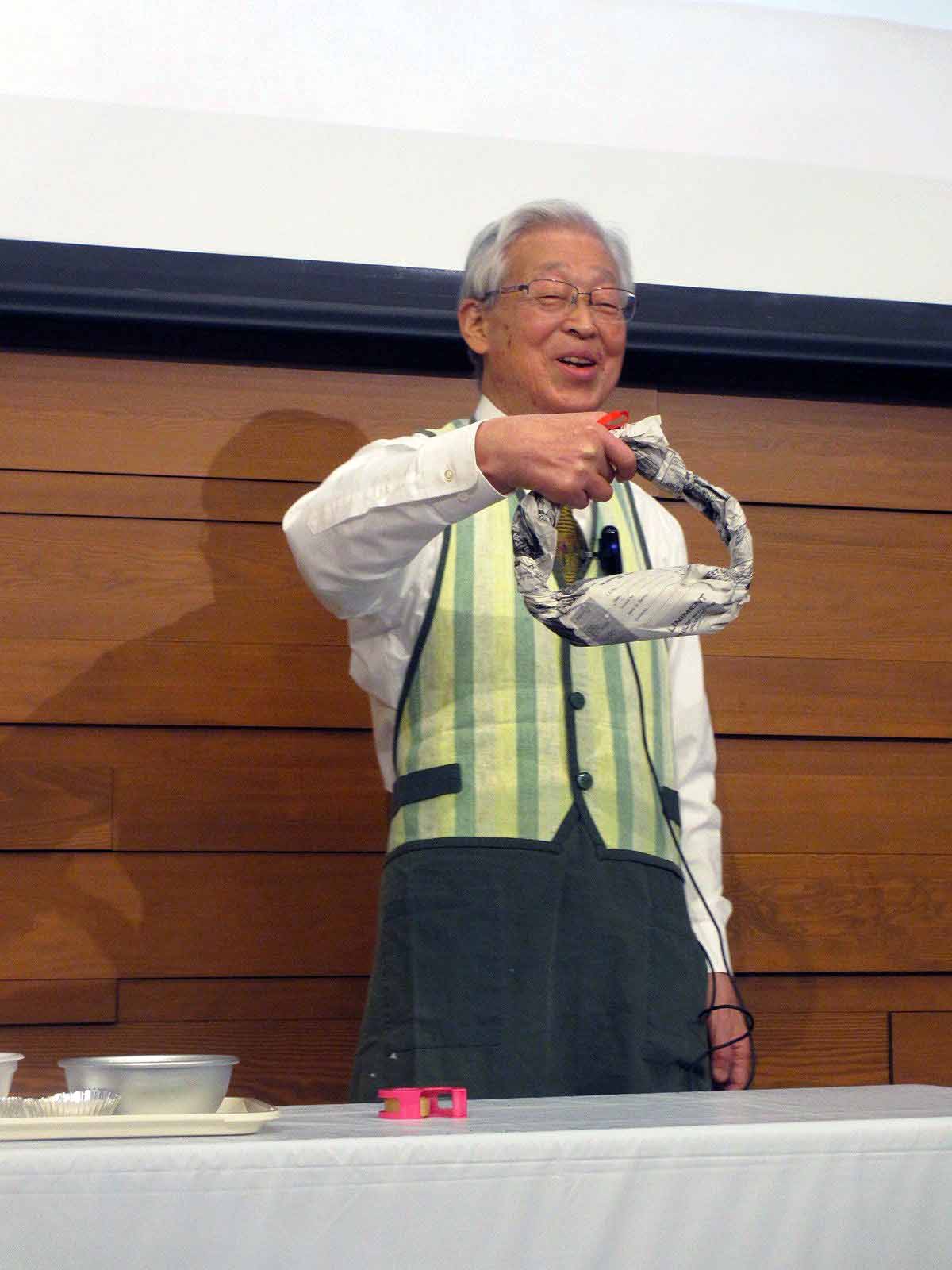 今回作ったのは、三角形のおにぎりです。おにぎりには、「三角」「丸」「円盤」「俵」と、さまざまな形があります。形には地方性が出ているようで、関東は三角、東北は焼くのに適した円盤、中部は球のような丸型、関西は幕の内弁当に収まる俵型が多いとか。