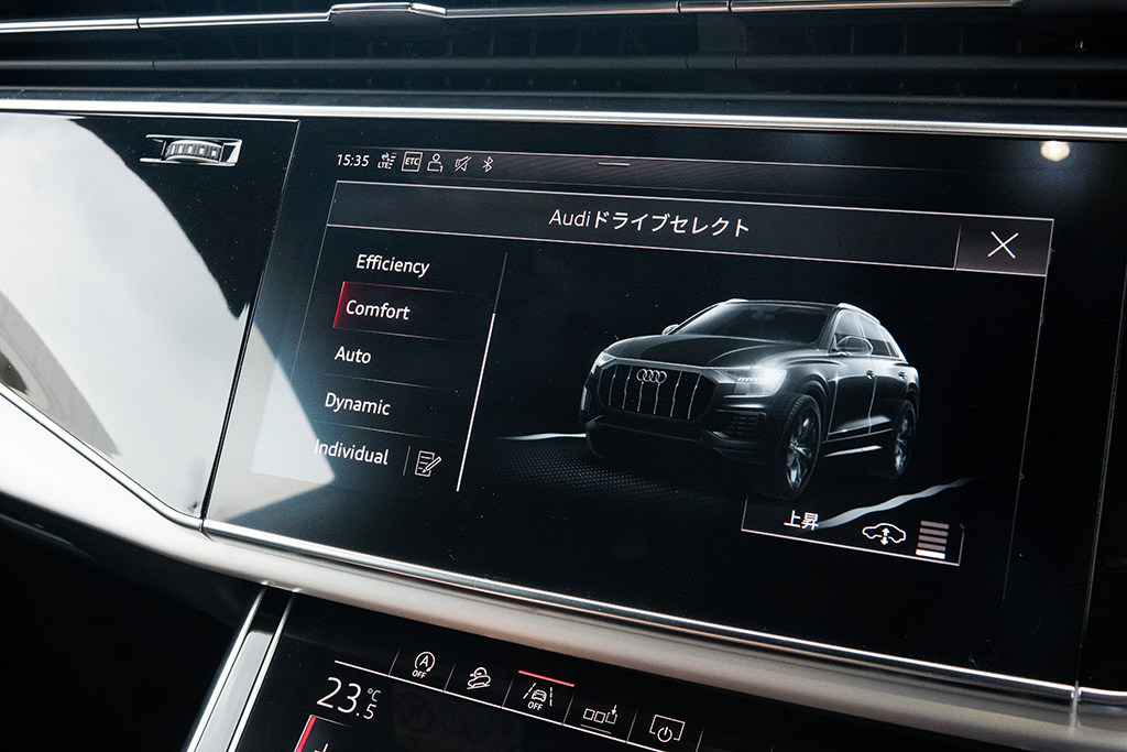 そもそも車体自体、車両重量2.2tという重量級の上に、セダンに比べて重心も高いから、特性的に乗り心地はかなり厳しいはずだ。しかしQ8は、まるで魔法のカーペットに座って移動しているかのような、極上の乗り味を提供してくれる。