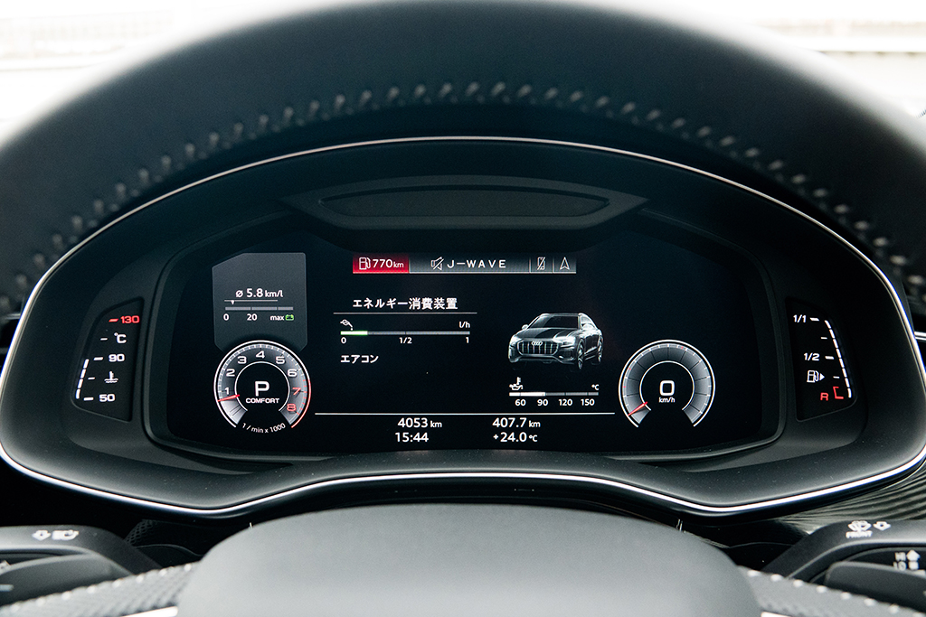 現在、Q8の日本仕様に搭載されるパワーユニットは、340馬力を発生する3リッターのV6ターボ。最大トルクは500Nmと、自然吸気エンジンなら5リッタークラスに匹敵するから、巨体でありながら十分速い。フィーリングは抜群にエモーショナル、というわけではないものの、SUVならこれくらいがちょうどいいだろう。