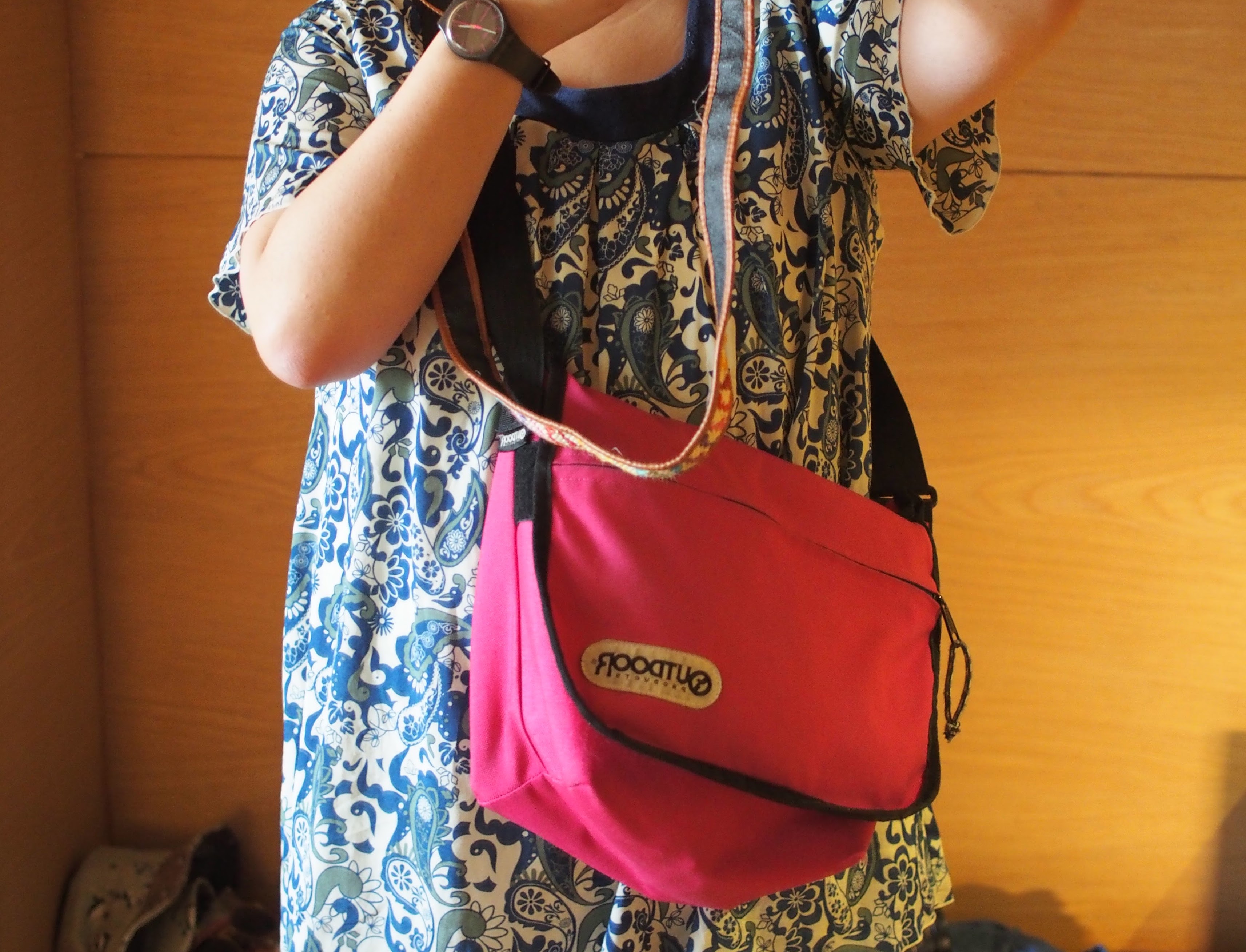 今回収めた荷物以外に、ペットボトルの水やちょっとしたお土産なども余裕で収まりそうです。とはいえ、これまでのショルダーバッグにもこの荷物は収まっていたのです。しかし、これまでのものとの大きな違いがあるんです。それが、身体へのフィット感。