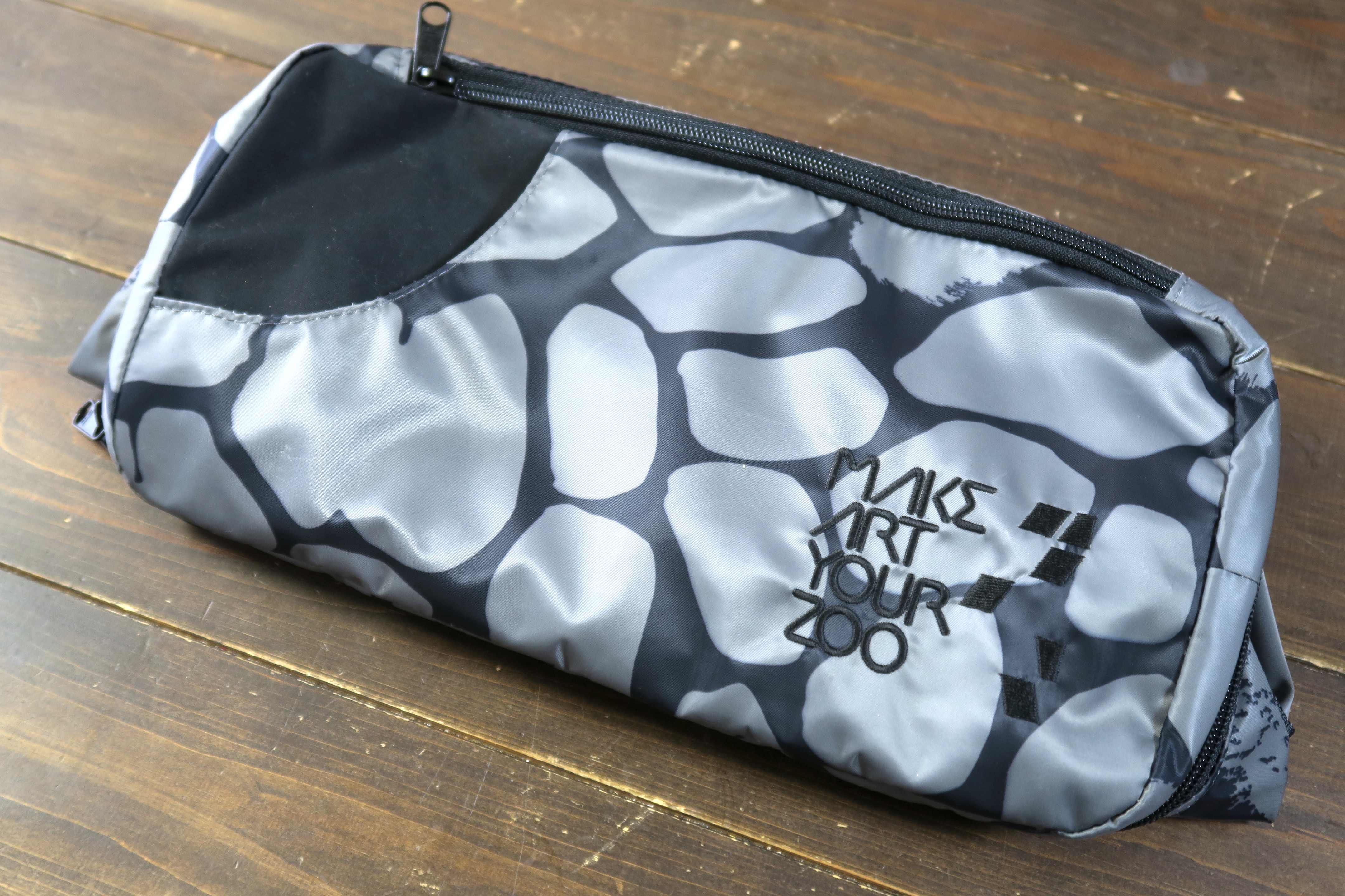 こちらが今回購入したMAKE ART YOUR ZOOのメッセンジャーバッグです。イギリスのアーティスト「ガシアス by ラッセル・モーリス」とのコラボデザインのものを購入しましたが、ブラック、グレー、ネイビーなど柄なしのタイプもあります。