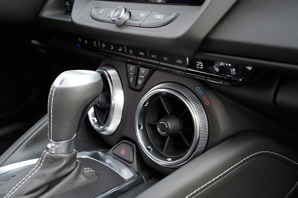 ひと目でカマロと分かる端正なクーペスタイルの2ドアボディ内には、実用に足る4名分のシートを確保。
