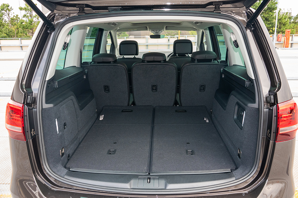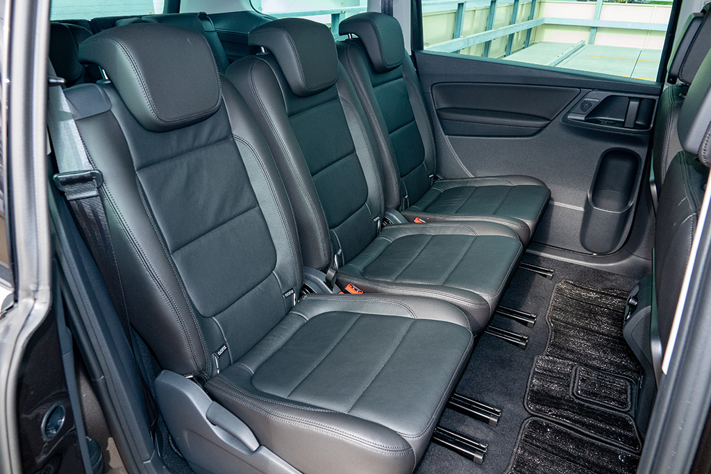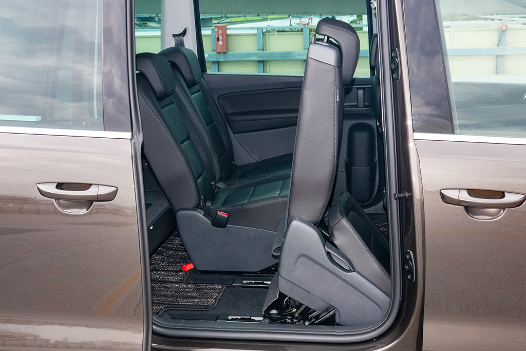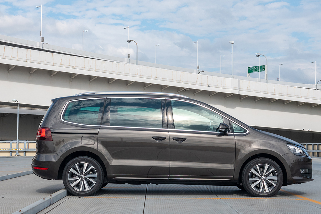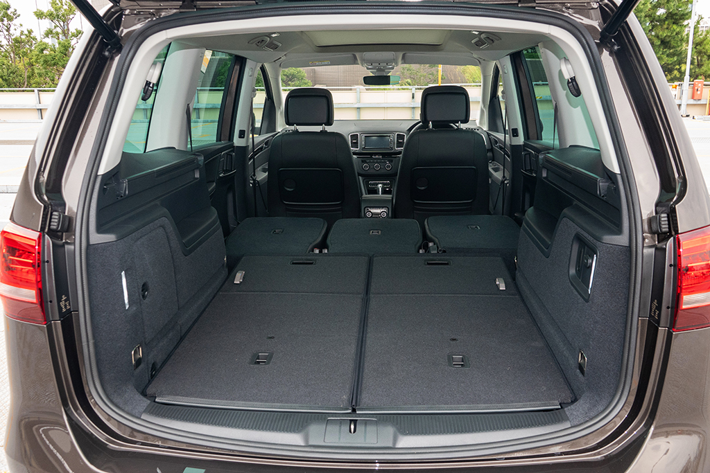 シャランはVWのラインナップ中、最も大きいミニバンで、「ゴルフトゥーラン」と比べて車体がひと回り大きく、トヨタの「アルファード」「ヴェルファイア」に近いサイズ。ゴルフトゥーランのサードシートがあくまで補助的なのに対し、シャランの3列目シートは十分広い。