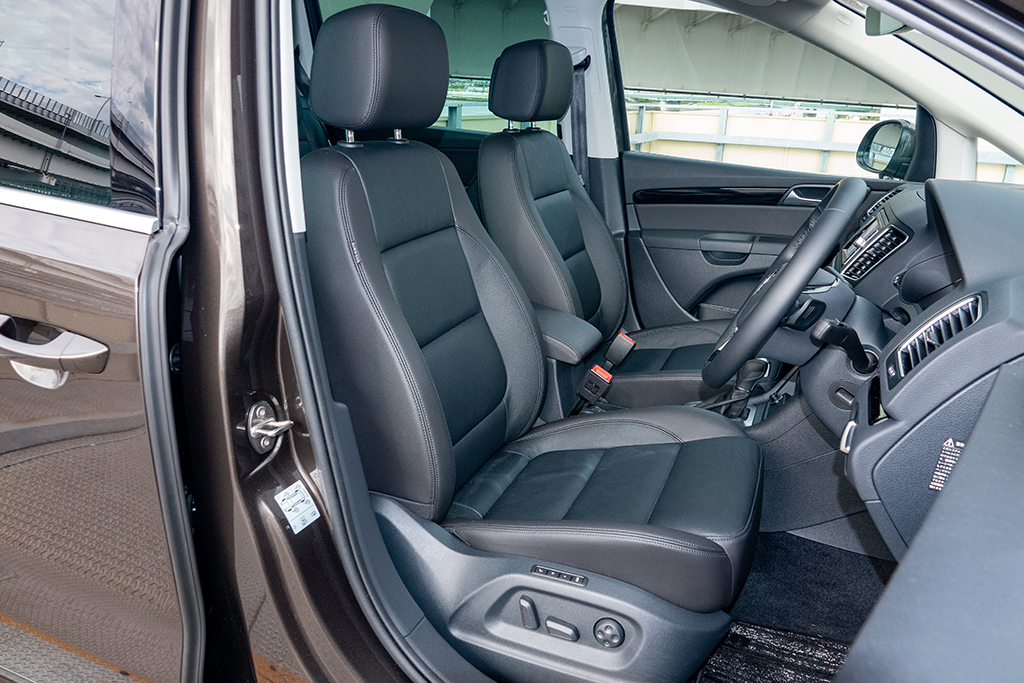シャランはロングセラーモデルだけに、装備類が充実していないのでは? と考える人もいるかもしれないが、ナビゲーションシステムや電動スライドドアなど、インテリアの快適装備は現代のレベルで見てもかなり充実している。
