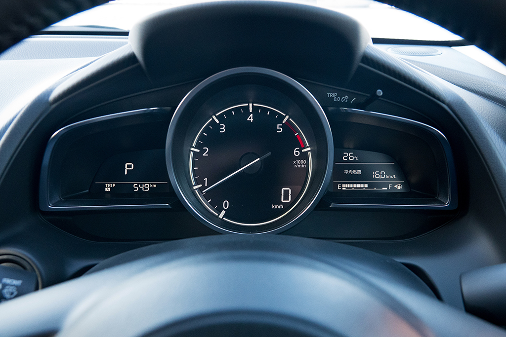 このほかマツダ2では、“レーダークルーズコントロール”の作動範囲が広がった点にも注目したい。デミオ時代のそれは、速度が約30km/hまで落ちると機能が解除されていたが、マツダ2のそれはバージョンアップを果たし、車速0km/hの状態まで作動するようになった(その先の停止保持は、ドライバーのブレーキ操作が必要)。つまり、デミオ時代のレーダークルーズコントロールは、渋滞時は使えないケースも少なくなかったが、マツダ2ではある程度まで、アシストしてくれるようになったのだ。