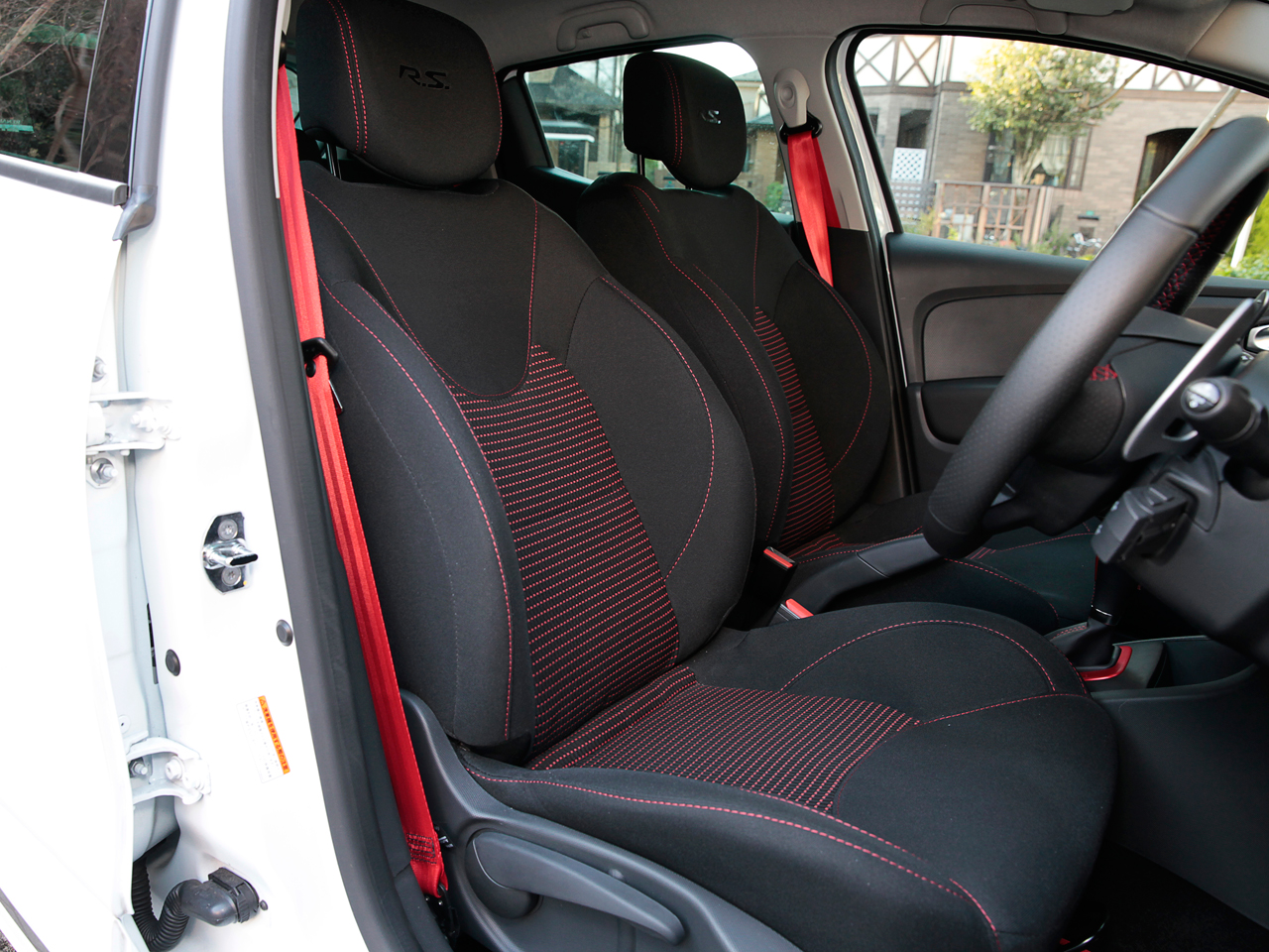 R.S. トロフィーの1.6リッターターボは、R.S. シャシー スポールに積まれるものより20馬力高い220馬力を6050回転で、1.1kg-m太い26.5kg-mの最大トルクを2000回転で発生します。普段は過給機付きエンジンらしい、低回転域からの豊かなトルクに任せて気の置けないドライブを楽しみ、いざとなったらブン回してサーキット譲りのパフォーマンスを堪能すればいいわけです。
