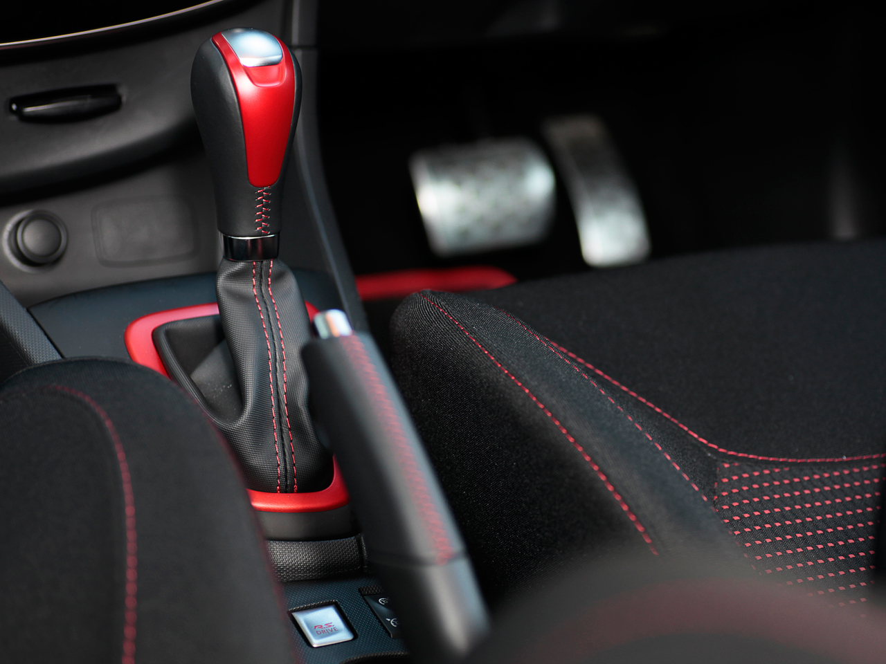 シフトレバーの後ろに設けられた“R.S.DRIVE”ボタンを使えば、走行モードを“ノーマル”“スポーツ”“レース”に切り替えられます。ギヤの変速タイミングだけでなく、アクセルとエンジンの関係、ステアリングの重さほか、電子制御されている箇所全般の特性を変えられる本格派。ただし、レースモードを選ぶと、乱れた挙動を正してくれる“ESC”もカットされますから、公道では選ばない方がいいかも…。
