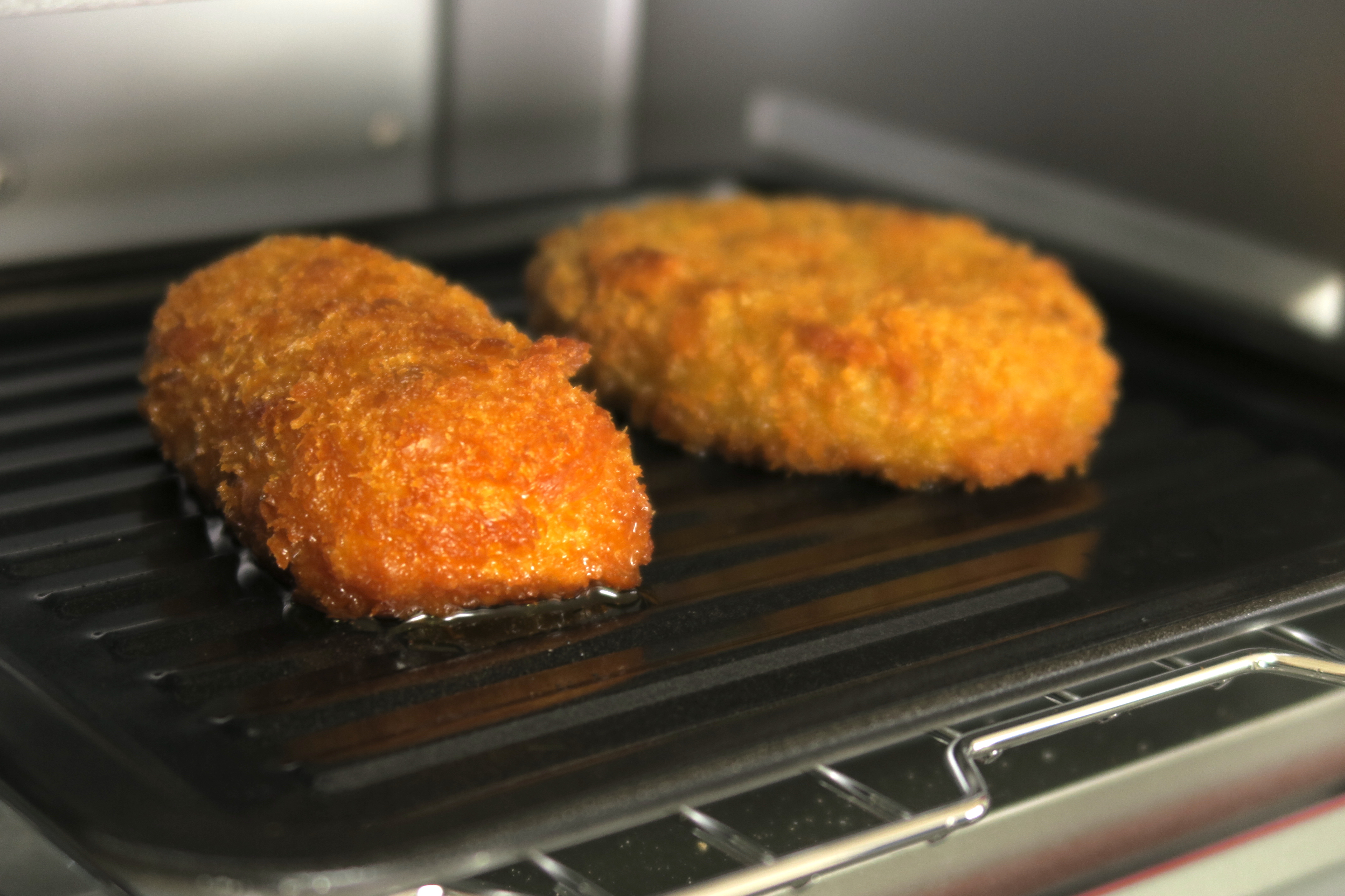 パンだけでなく揚げ物などの温めもヘルシオ グリエは得意です。スーパーで買って1晩冷蔵庫に入れたコロッケも、揚げたてのようにサクサクの食感に仕上がるんです。