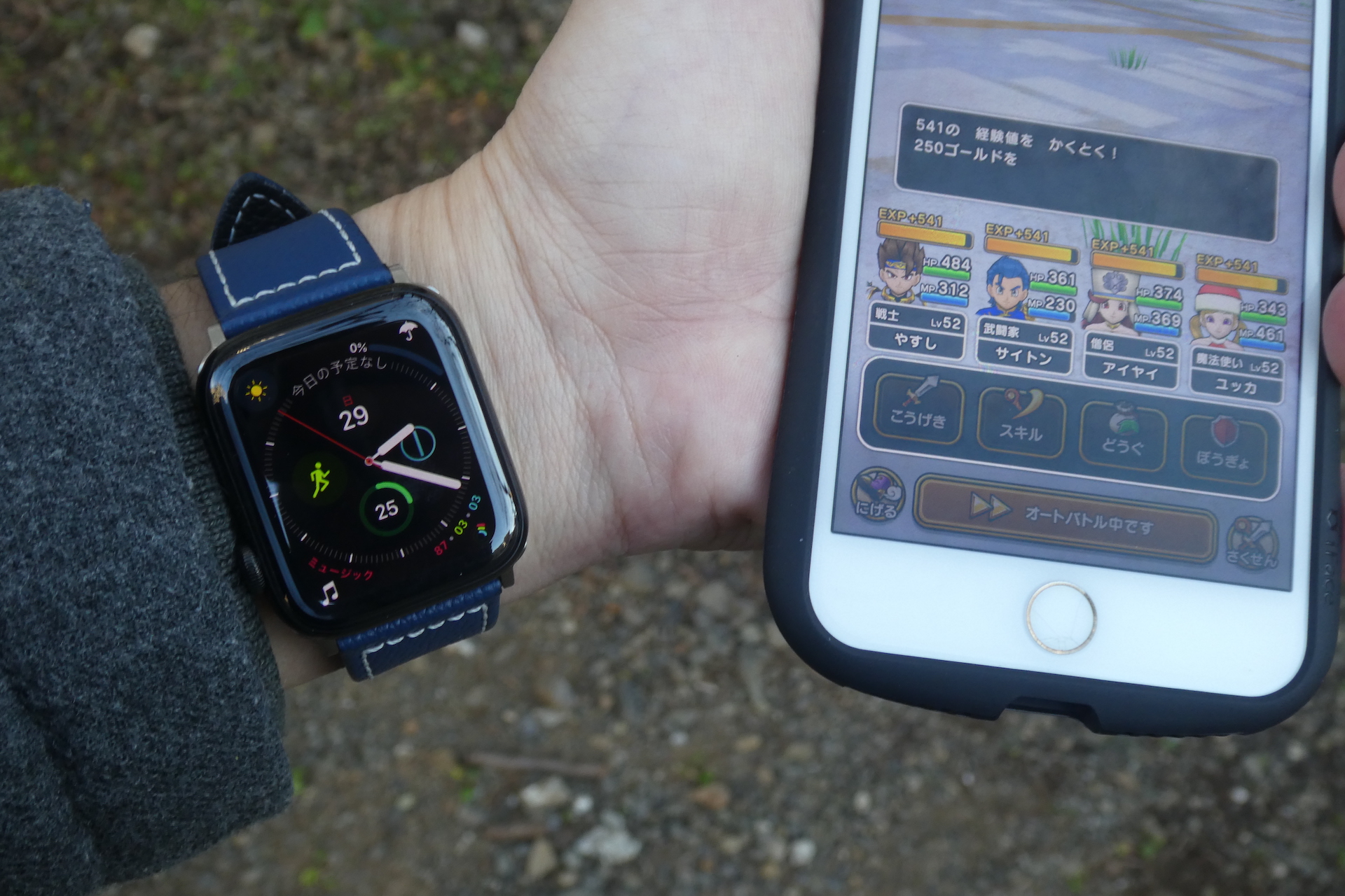 ▲腕にはアップルの「Apple Watch series 5」を装着して活動量や歩数などを計測しながら日々のドラゴンクエストウォークを楽しんでいる