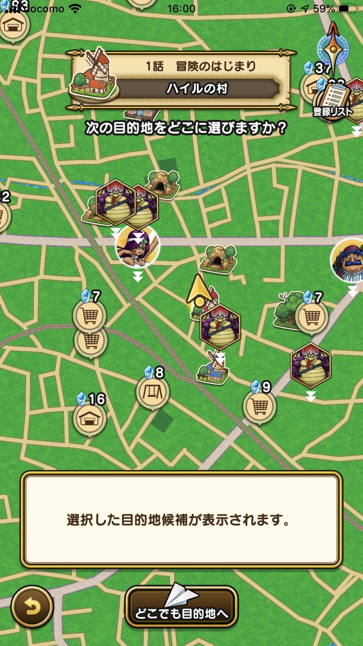 どんどんクリアしていくと、次のストーリーを開くために必要な導きのかけらが足りなくなるため、そうするとクエストの目的地を遠くに設定することで、少しでも導きのかけらをためられるようになる。歩数がさらに増えていくというわけだ。