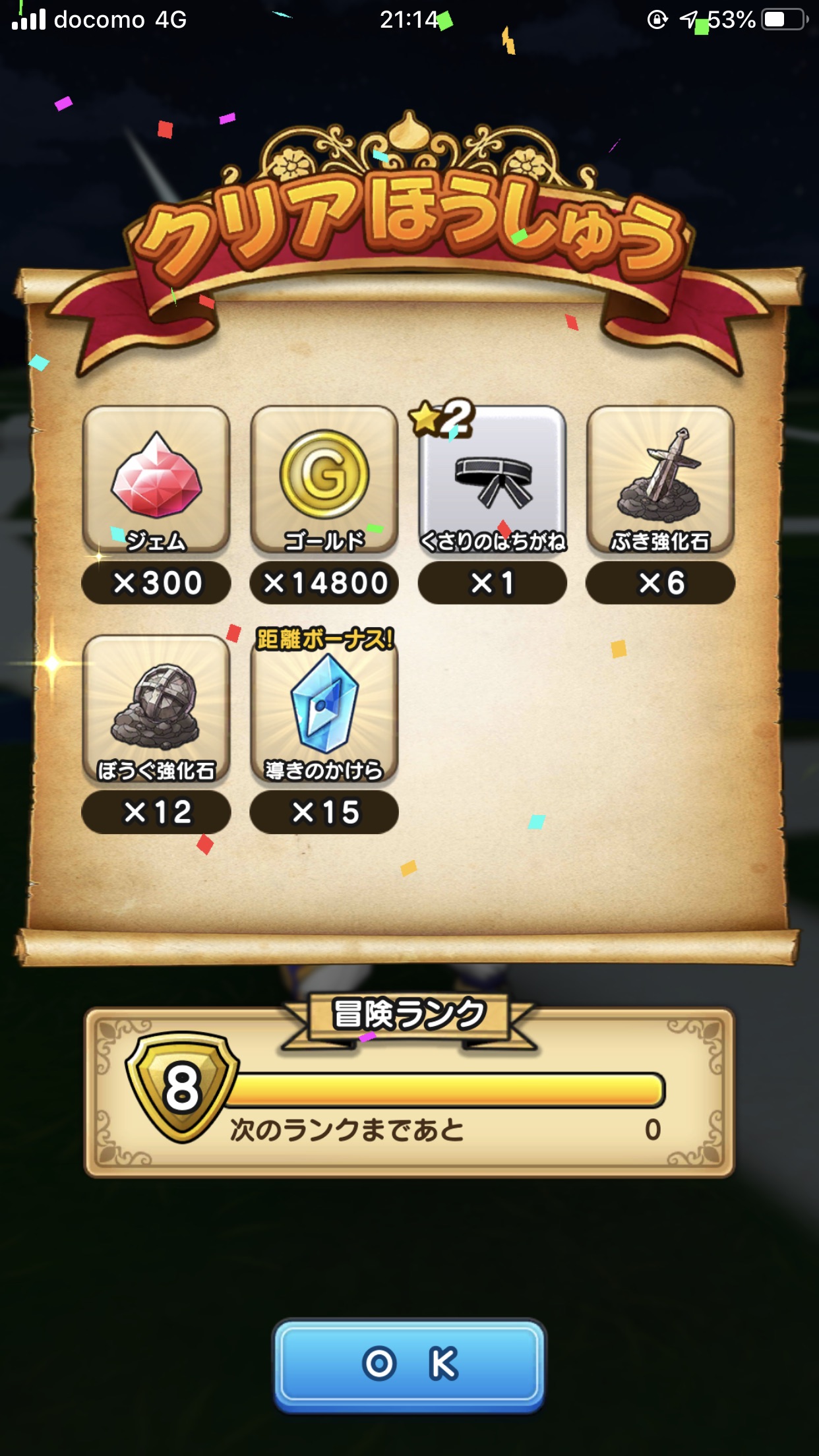 ストーリークエストも最初のうちはかなり簡単にクリアできる上に、経験値を得ながらどんどんとレベルアップが進んでいく。クリアしたら次話を開いて目的地を設定し、それをクリアしたら次話……といったように、面白いほど歩数が増えていく(ほどドラゴンクエストウォークが面白い)。