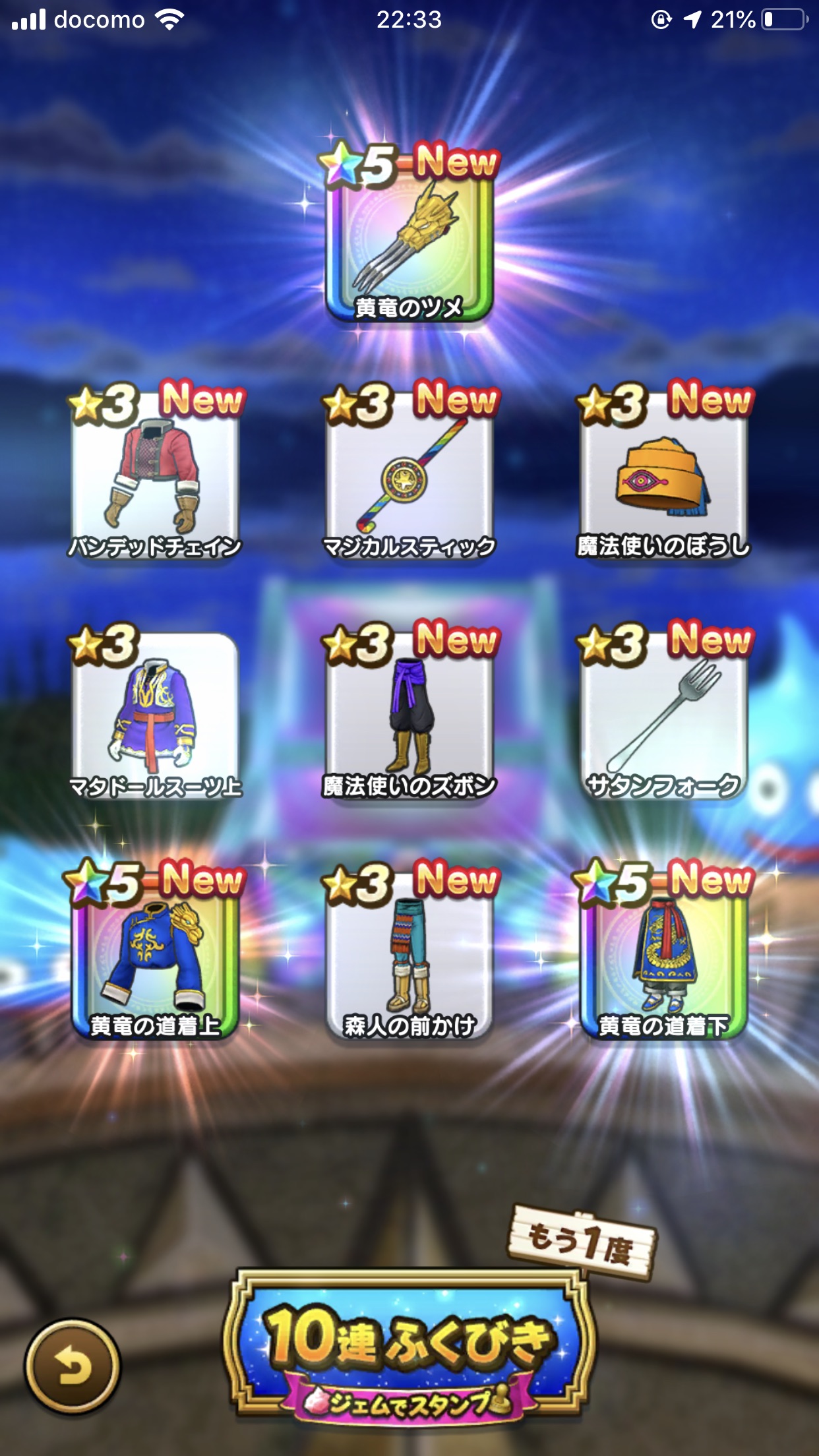 ▲「ジェム」を使ってできる「ふくびき」をしたところ。☆5つのアイテムをゲットできると、クエストをよりクリアしやすくなる