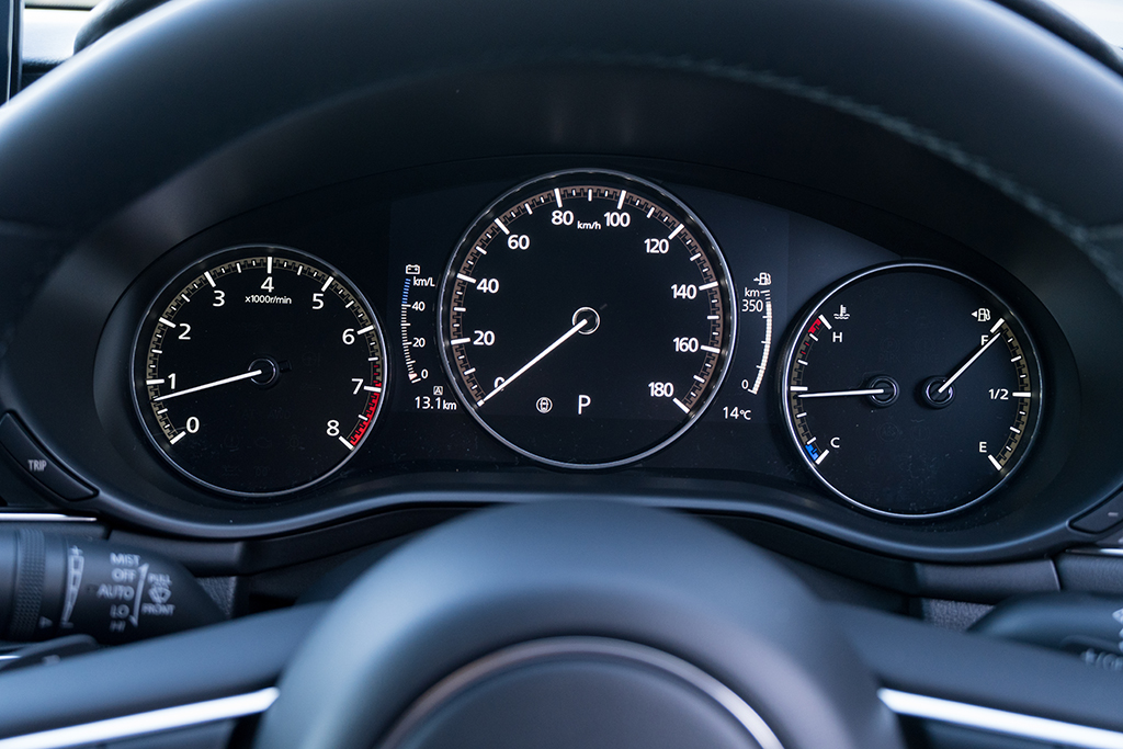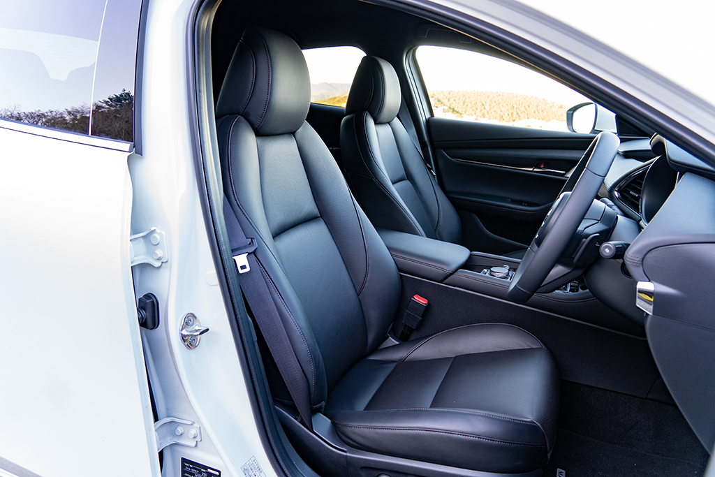 実際に走った印象も、そうしたスペックが示すとおりだ。特に中間加速でアクセルペダルを踏み増した際、スカイアクティブXでしか味わえない気持ち良さが顔を出す。踏み増した直後、グッと背中を押すような加速感を返してくれるのだ。知らず知らずのうちに、その一瞬の気持ち良さを求める運転になっていることに気づく。