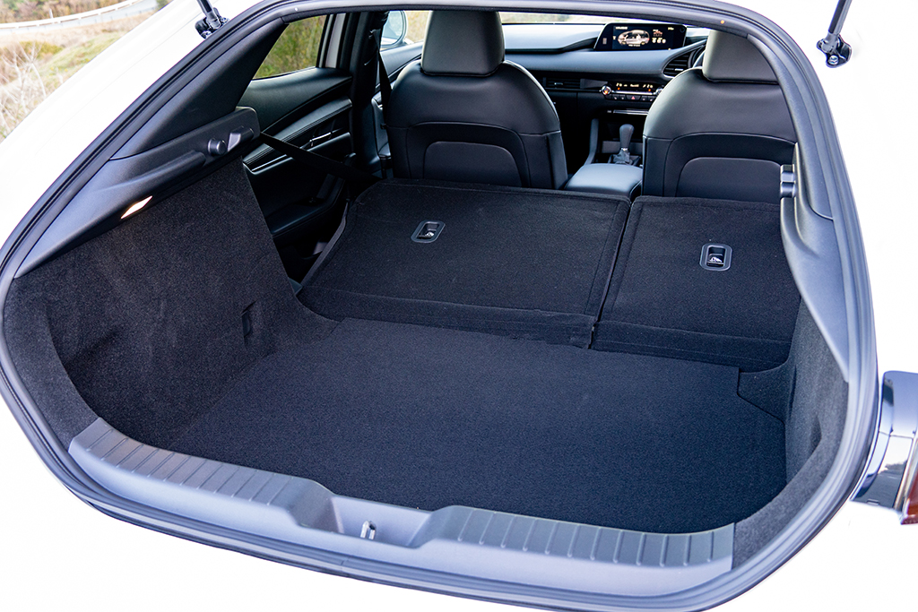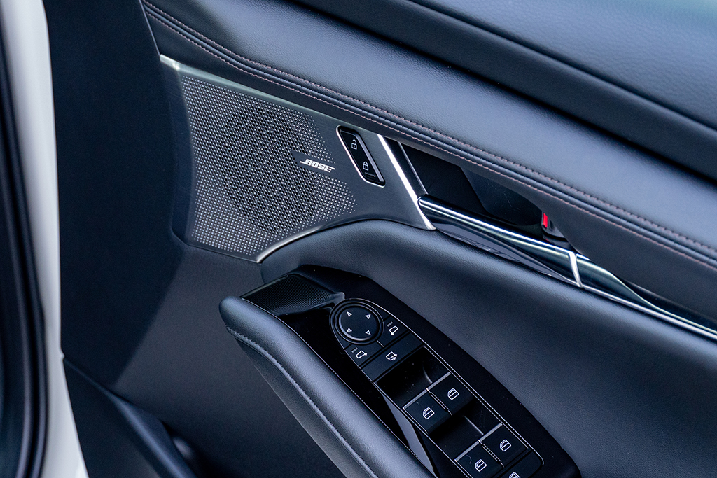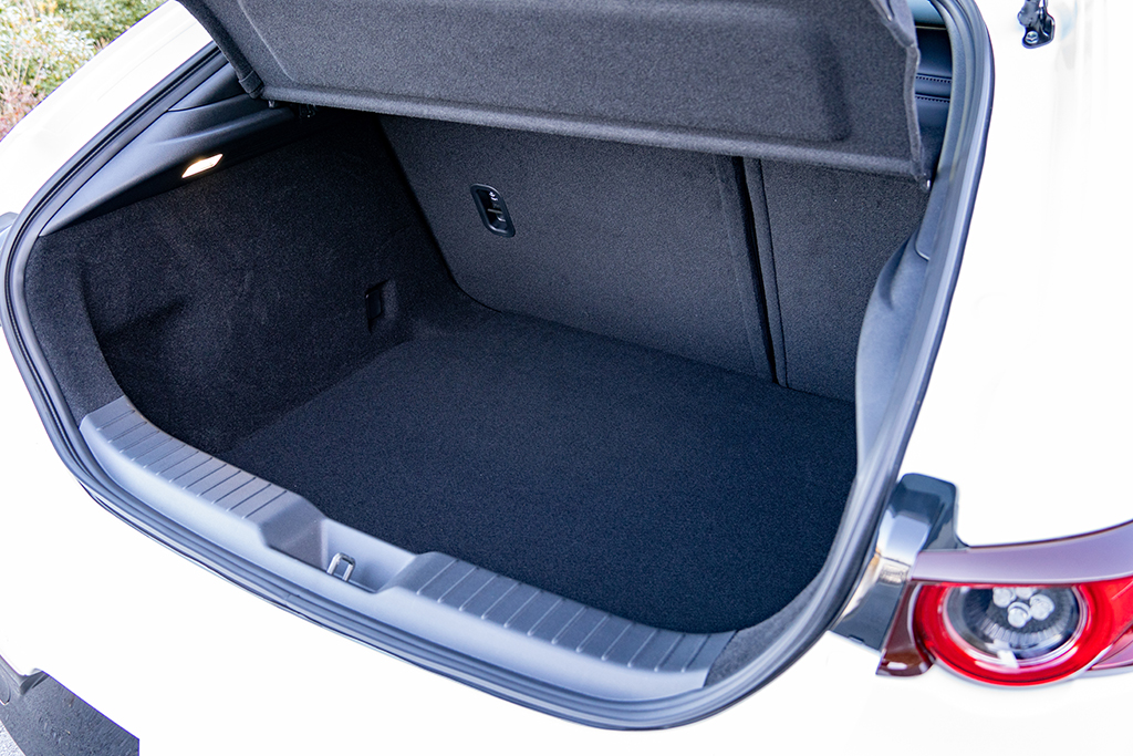 それはまるで、F1マシンのエンジンカウル内部のようだ。F1の場合、空力性能に軸足を置いてエンジンをカプセル化しているが、徹底ぶりはマツダ3も共通している。マツダ3は大開口のフロントグリルを備えているが、メッシュのグリルに近づいてよく見ると、その奥は樹脂製のシャッターで閉じられていることに気づく。これも、音と温度制御の観点からであり、他のエンジンを搭載する仕様とは異なる点だ(空気抵抗の低減にも効いている)。