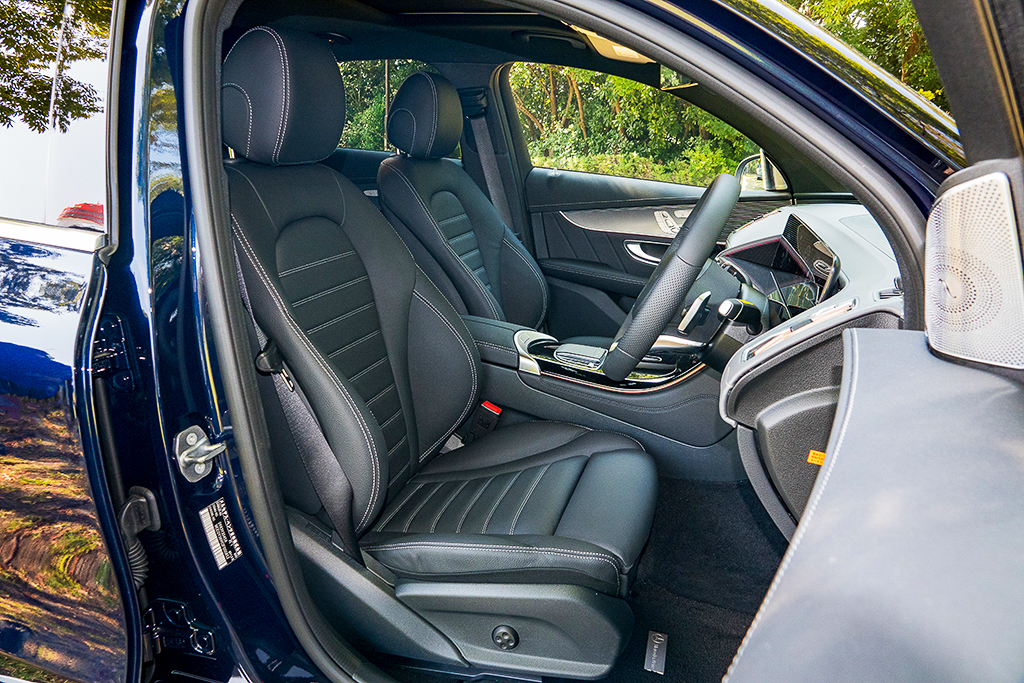 インテリアも先進性あふれる仕立てだ。クルマに向かって話しかけることで、ナビゲーションの目的地を設定したり、エアコンの温度を調整したりできる“MBUX(メルセデス・ベンツ ユーザーエクスペリエンス)”を標準装備。また、まるで2台のタブレットを配置したかのような大型液晶パネルを中心とするインパネ回りのデザインは、未来感を強調する。近年、メルセデスが積極的に導入を進める斬新なインテリアデザインは、まるでEQCのためにあったかのような印象さえ受ける。