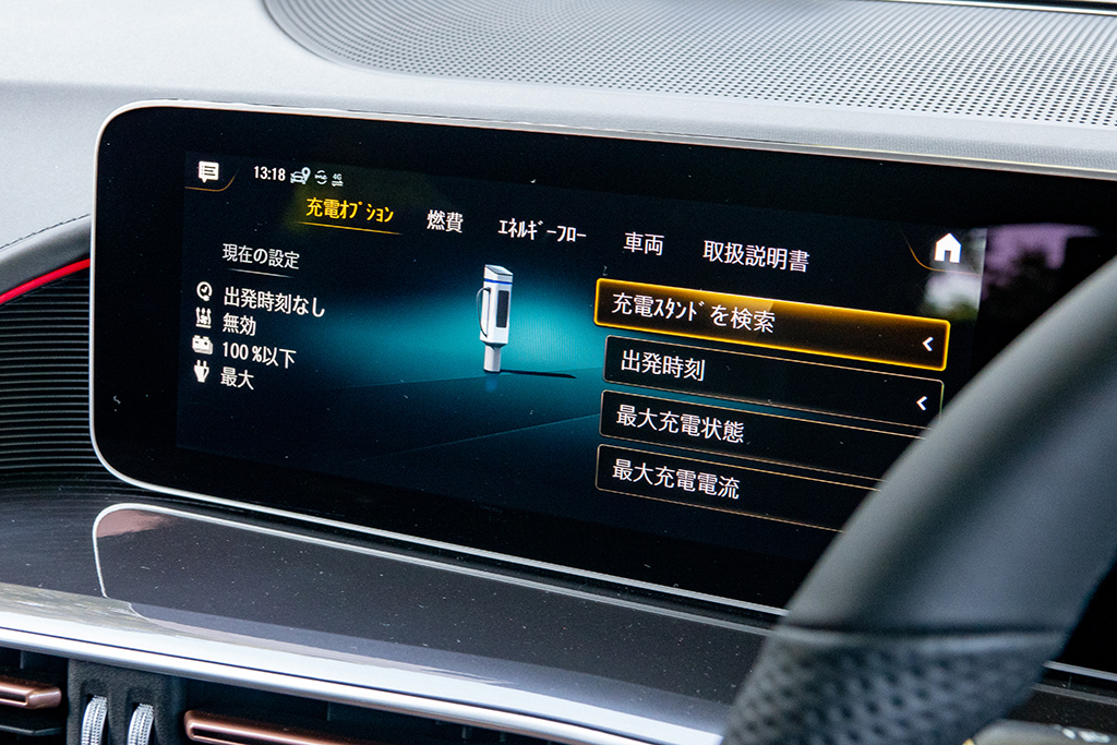 床下に積まれるバッテリーの容量は80kWhで、EVで気になる航続距離は、カタログ記載の“WLTCモード”で400kmと、ロングドライブをこなすのでなければ特に問題のないレベルを確保している。また充電時間は、住宅などに設置可能な充電ウォールユニット(6kW/30A)を使っての普通充電で、バッテリーがほぼ空の状態から満充電まで約13時間。
