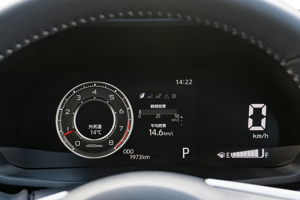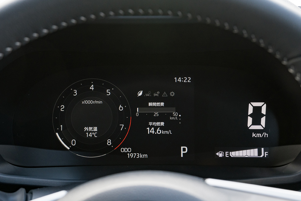 そんなライズをドライブしていて個人的に気に入ったのが、メーターパネルのデザイン。中間グレードである「G」以上に搭載される液晶メーターは表示切り替え式なのだが、これまでにはない斬新なグラフィックが用意されていて、見るだけで楽しくなってくる。