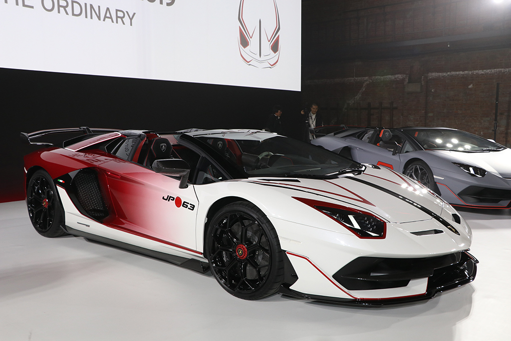 ランボルギーニの創業者であるフェルッチオ・ランボルギーニ氏の生誕100周年を記念して、2016年のジュネーブショーで発表されたのが「チェンテナリオ」。クーペとロードスターが20台ずつ、世界限定販売された。ベースとなったのは、旗艦モデルの「アヴェンタドール」だが、専用のエクステリアデザインが与えられたほか、モノコックを含む全ボディパーツをカーボンファイバー製とすることで、軽量化も実現した。V型12気筒DOHCエンジンは、770馬力へとパワーアップされている。今回展示された車両は「チェンテナリオ・ロードスター」にカスタムオーダーを加えた特別仕立ての1台だ。