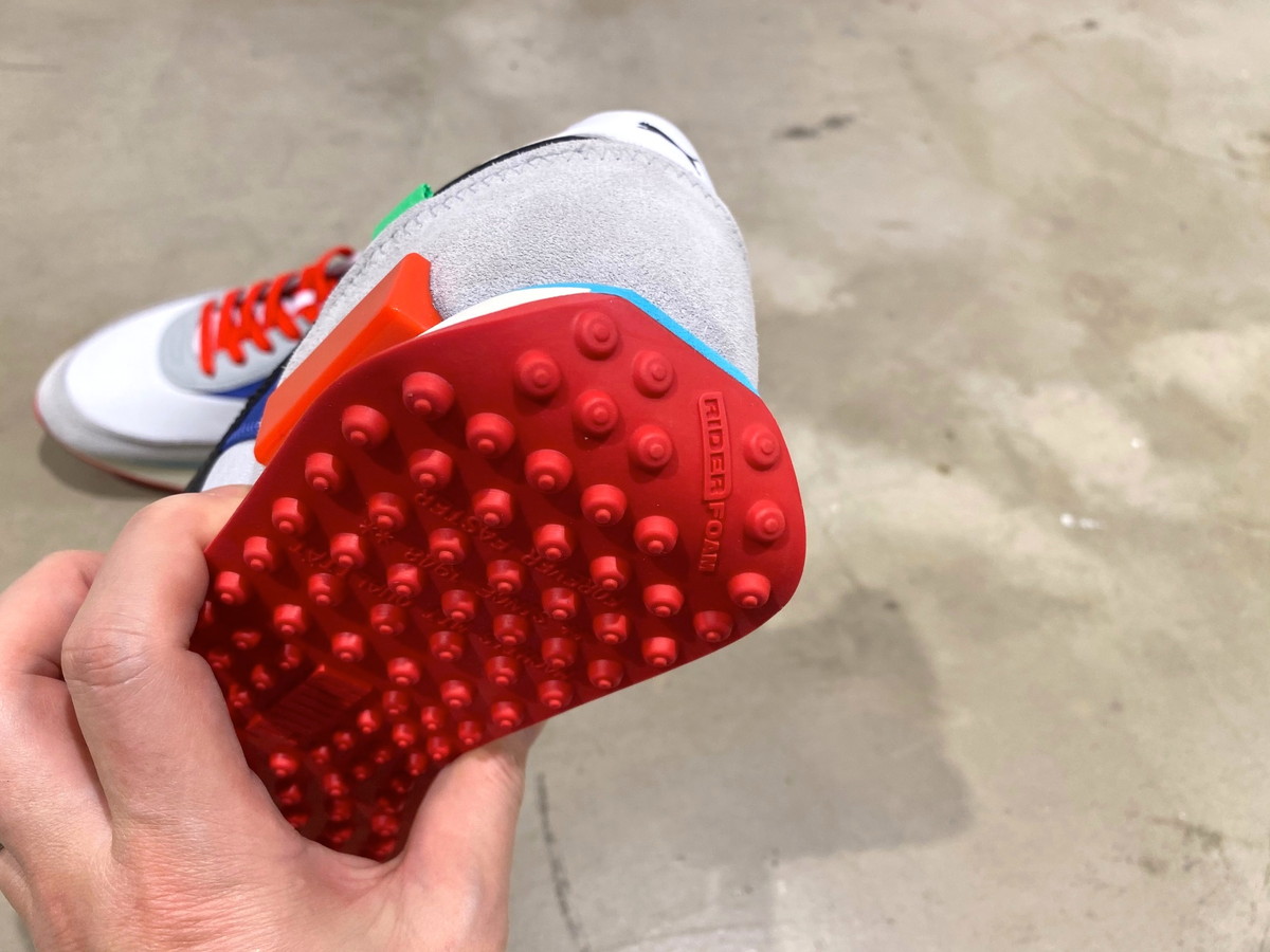 アウトソールは「ファストライダー」ならではのアウトソールテクノロジー“フェダーバインソール”をアレンジ。1本スタッドが着地の瞬間の衝撃を吸収、分散してくれます。