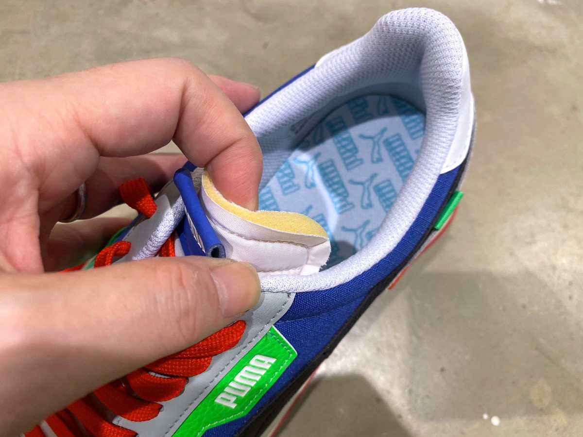 シュータンはオールドランニングモデルで多く見られるスポンジ露出型で、クラシック感を残しています。