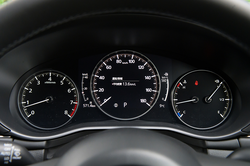 また燃費に関しても、カタログ記載のWLTCモードで、スカイアクティブXを搭載するX Lパッケージが17.2km/Lに対し、15Sツーリングは16.6km/Lと劣ります。街乗りでの実用燃費においても、スカイアクティブXが元気よく走って15km/L強をマークするのに対して、1.5リッターのスカイアクティブGは13km/L少々といったところ。もちろん、燃費は使い方によって大きくデータが変わるため単純比較はできませんが、排気量が大きく車重も重いX Lパッケージの方が燃費が良好というのは、まさに夢のエンジンの面目躍如といったところでしょう。